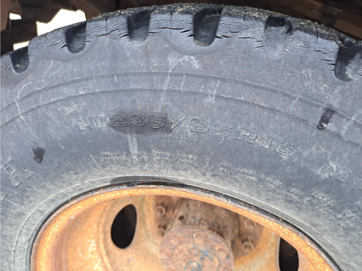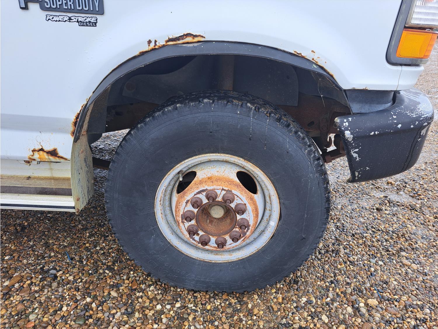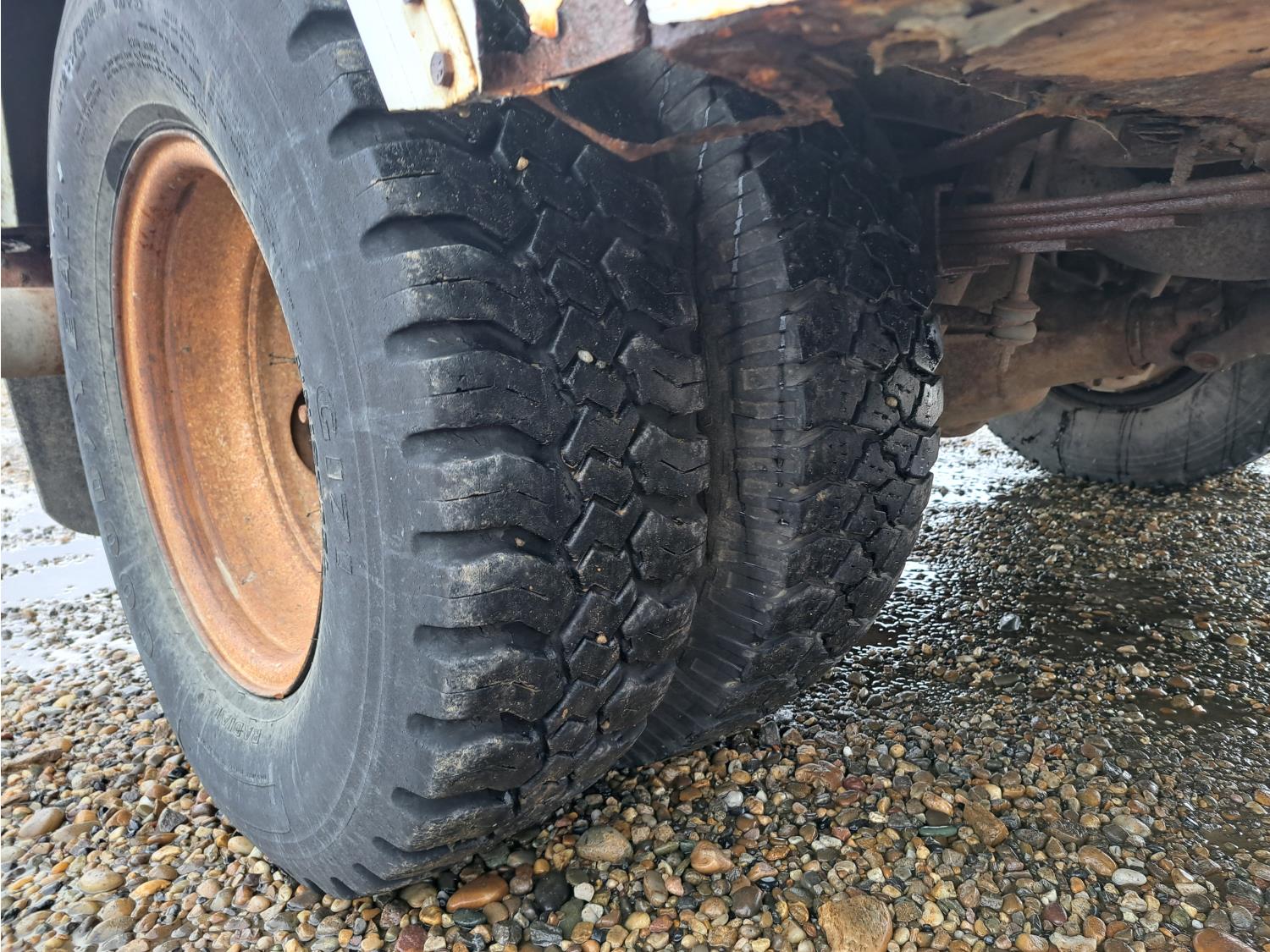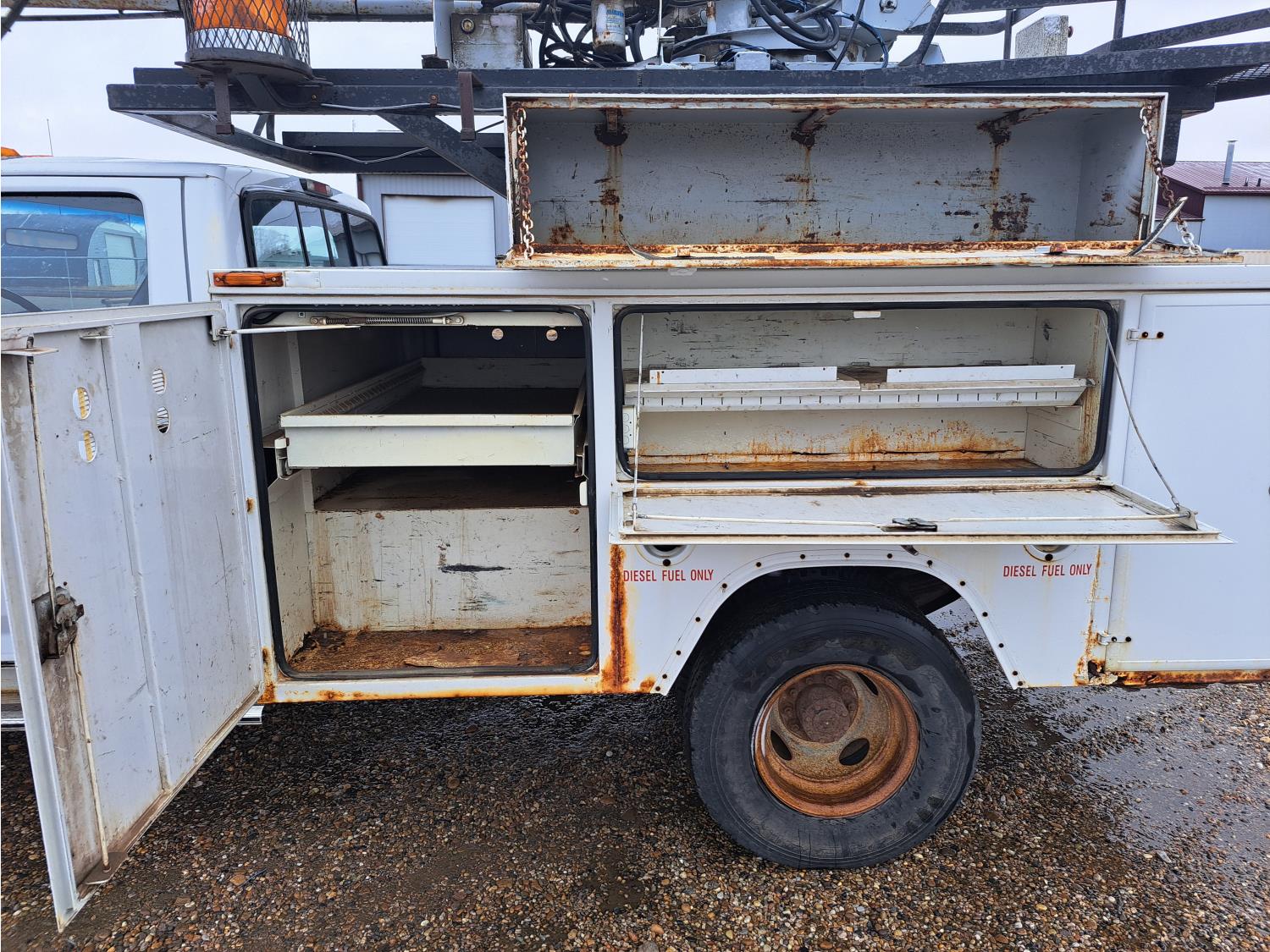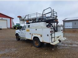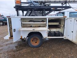 7.3 L V8 diesel engine, 5 speed manual transmission, A/C, cruise control, radio, running boards, tool boxes, straight boom crane, spring suspension, 235/85R16 tires