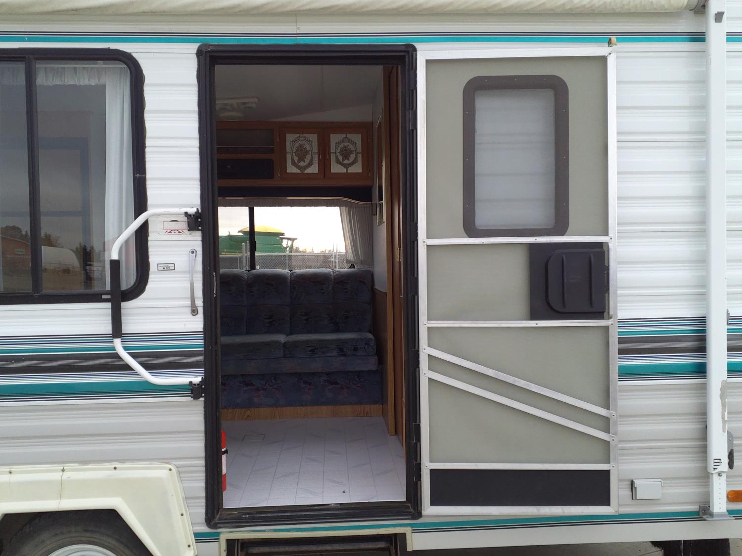 Sleeps 6, stove, fridge, microwave, master bedroom, manual awning, spring suspension, 225/75R15 tires
