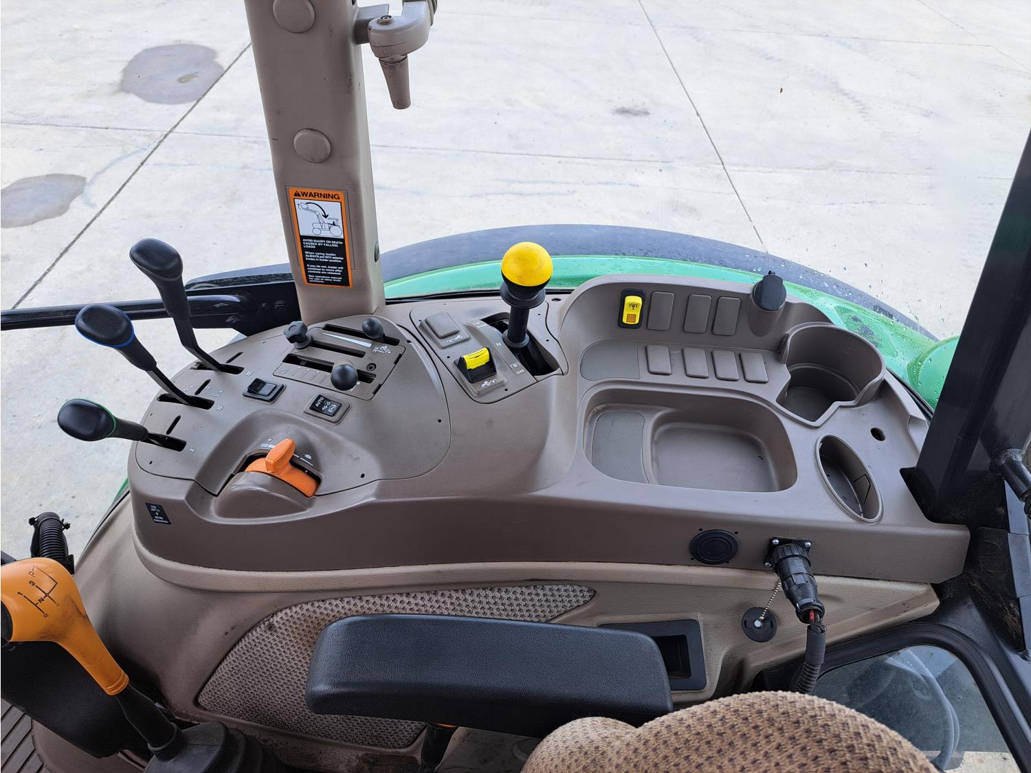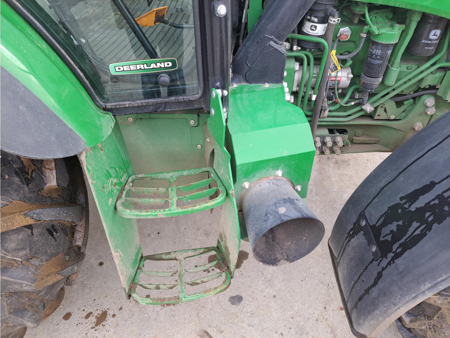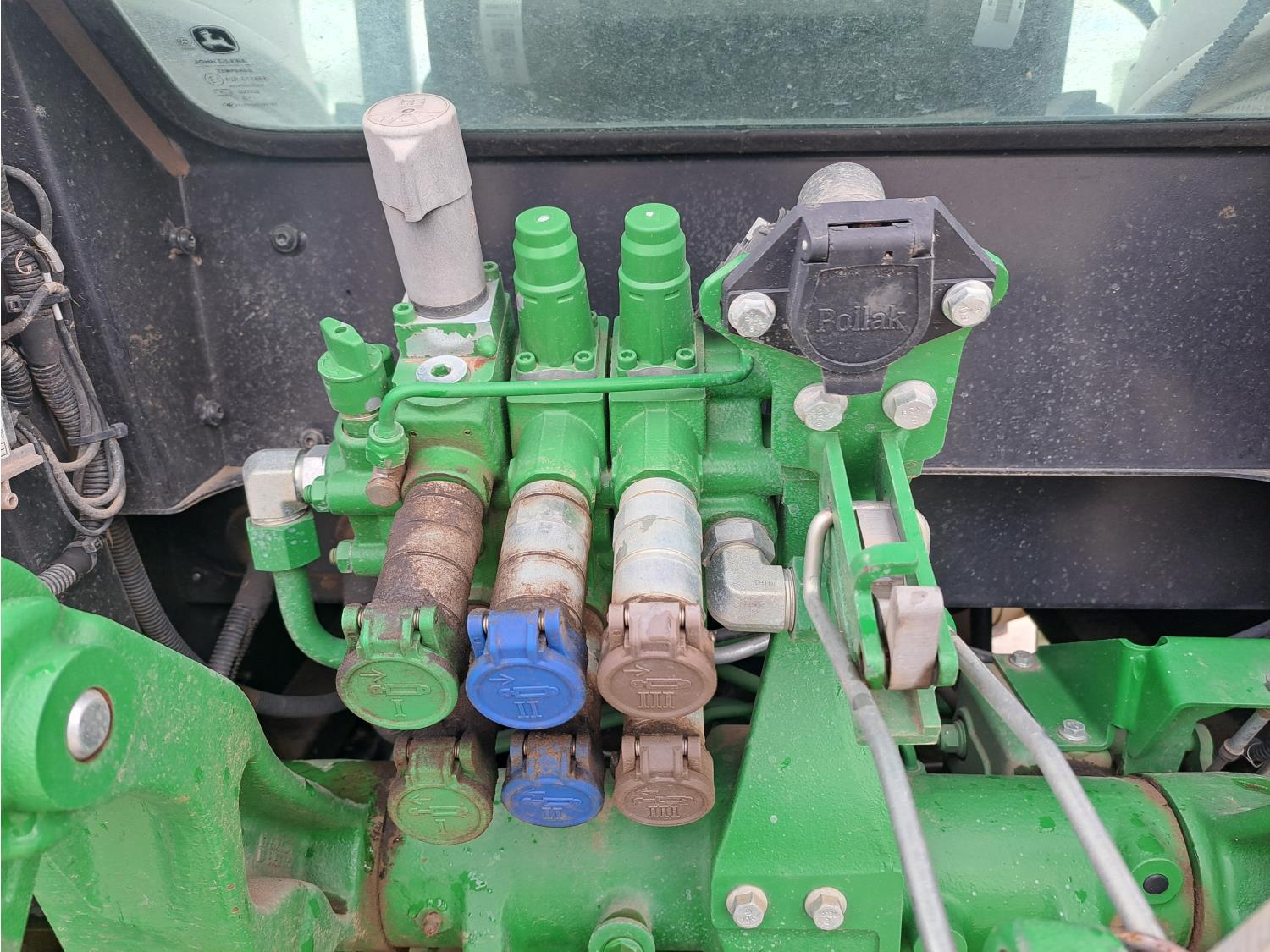 John Deere 4.5 L 4 cylinder 90 HP, diesel engine, DEF required, 16 speed partial synchro transmission, cab, joystick, A/C, radio, air ride seat, 540 PTO, 3 point hitch, 3 rear hydraulic outlets, 12.4-24 front tires, 18.4-30 rear tires