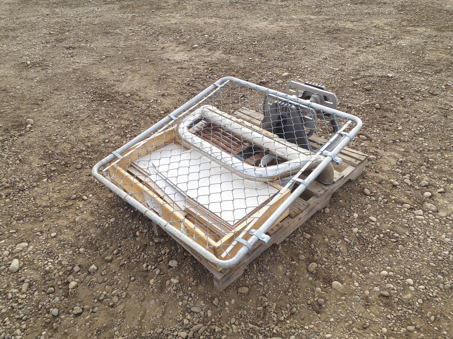 garden hose reel, push bumper, mesh wire gate and miscellaneous tiles