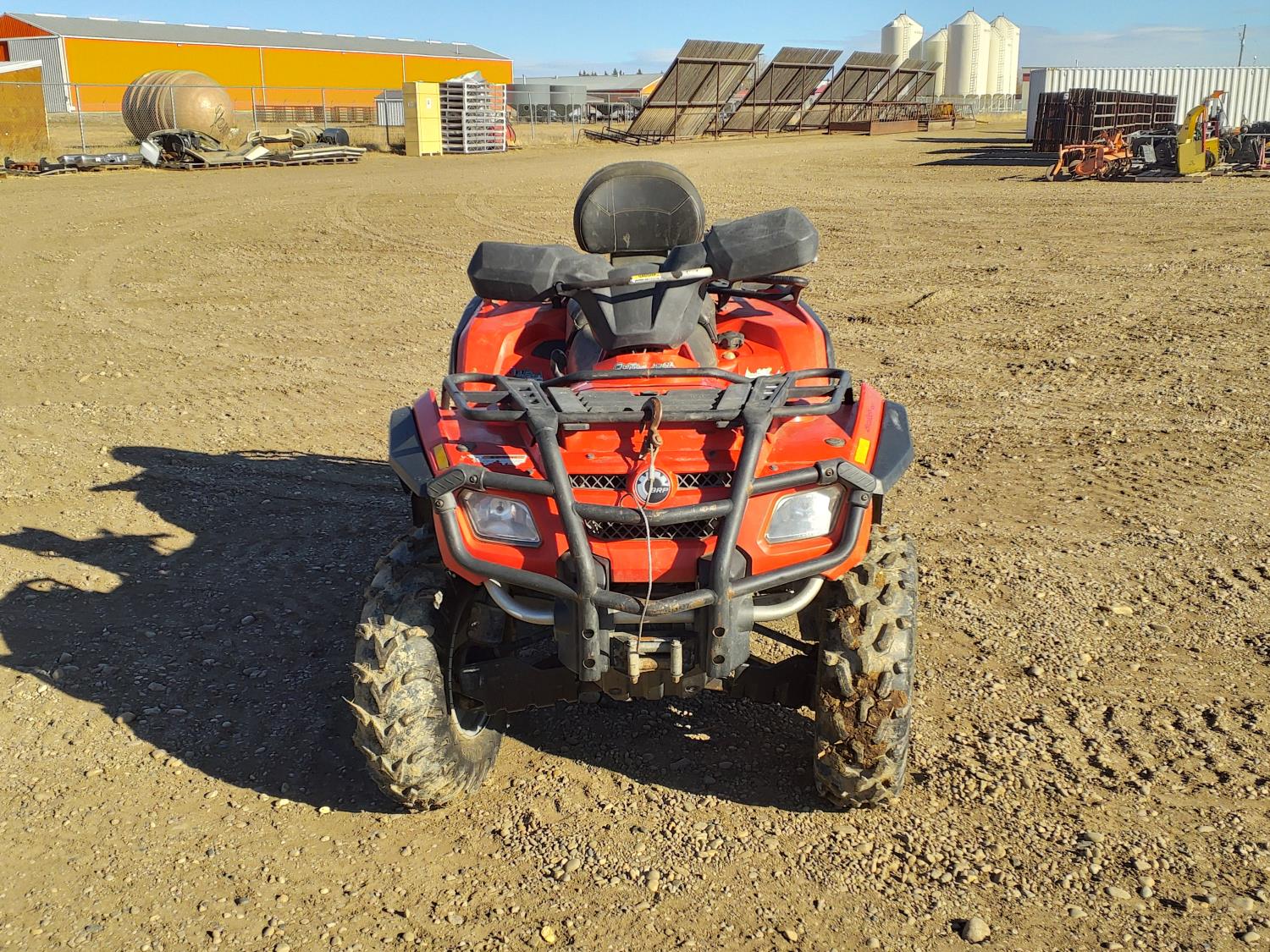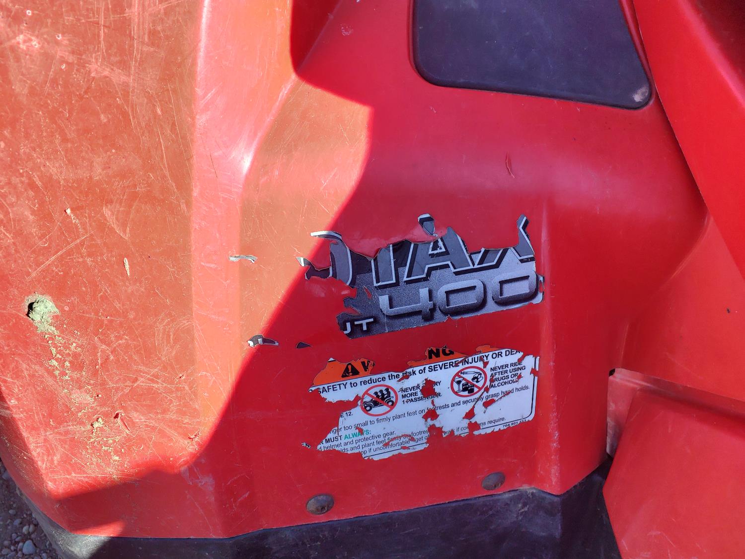 400 cc water cooled engine, CVT transmission, Hi/Lo range, reverse, hitch, front and rear racks, front winch, 25X8-12 front tires, 25X11R12 rear tires