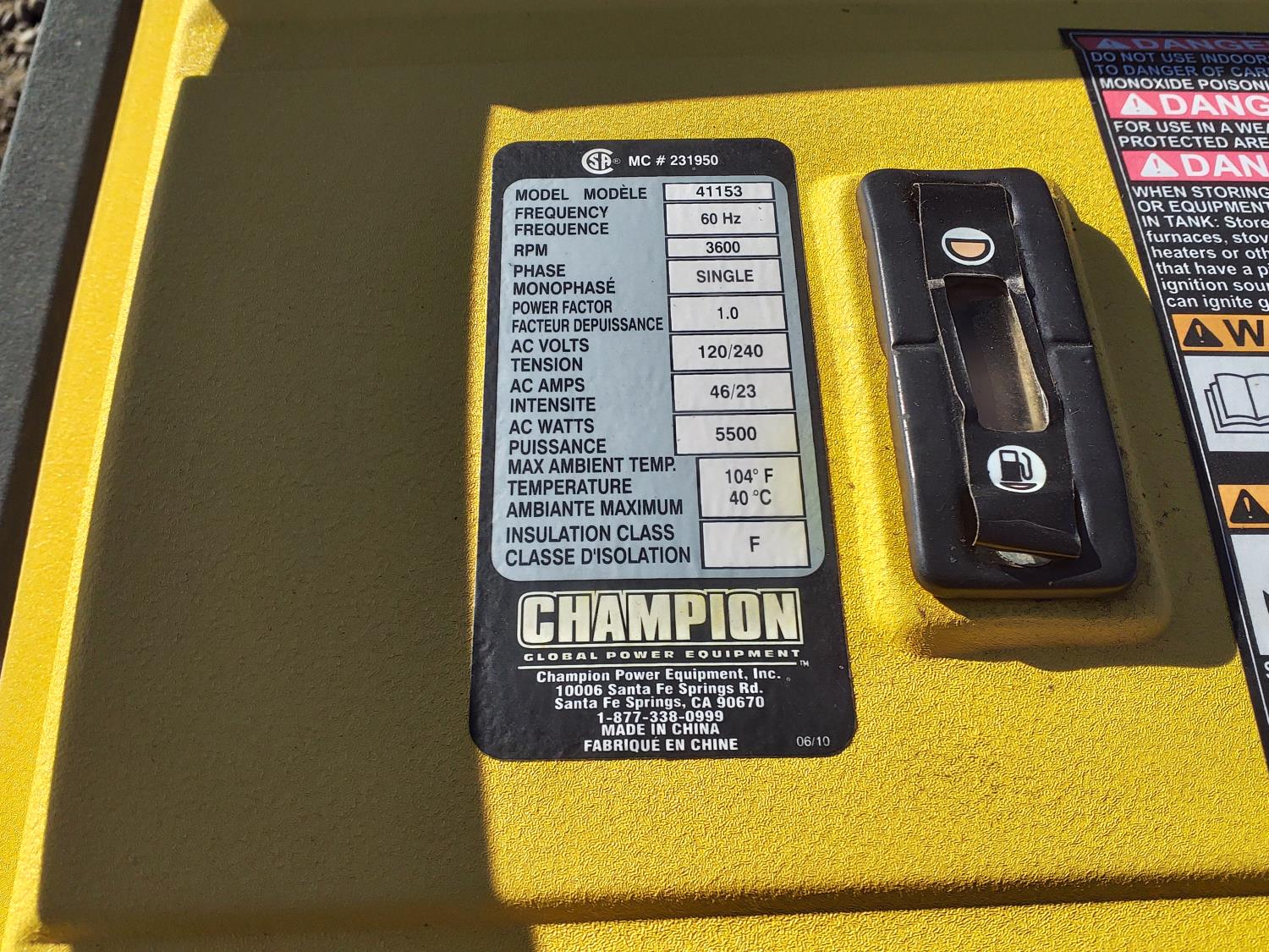 67 Champion 6500 Watt Generator with electric start