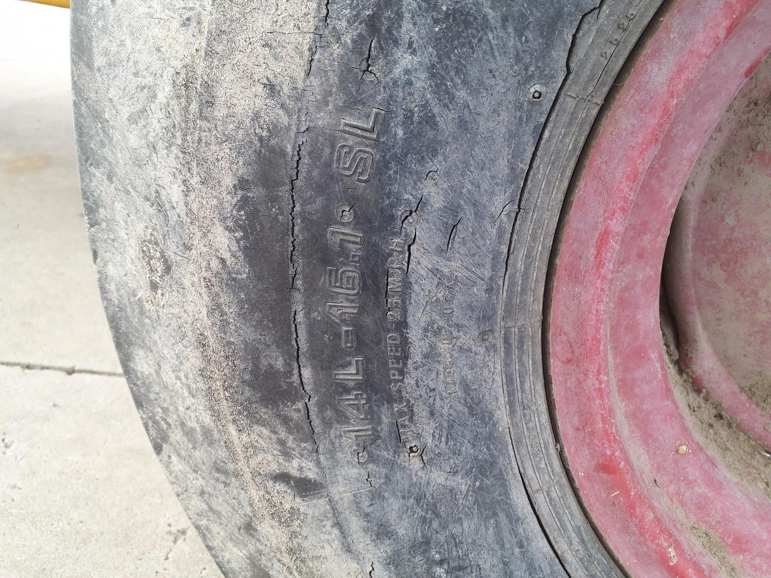 1000 PTO, right discharge, rear bale loader, hydraulic discharge chute, 14L-16.1SL tires