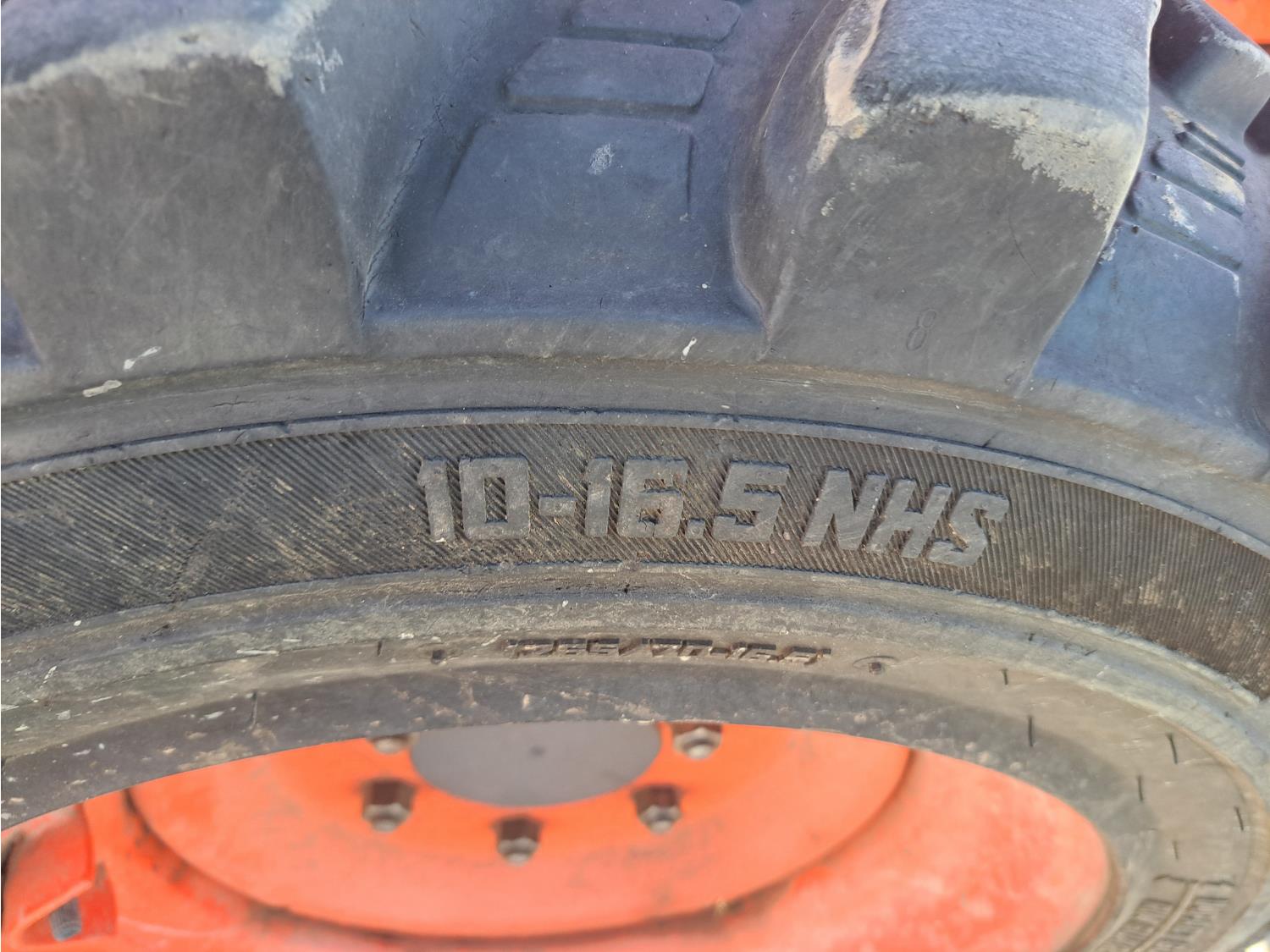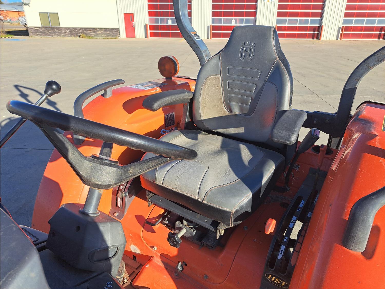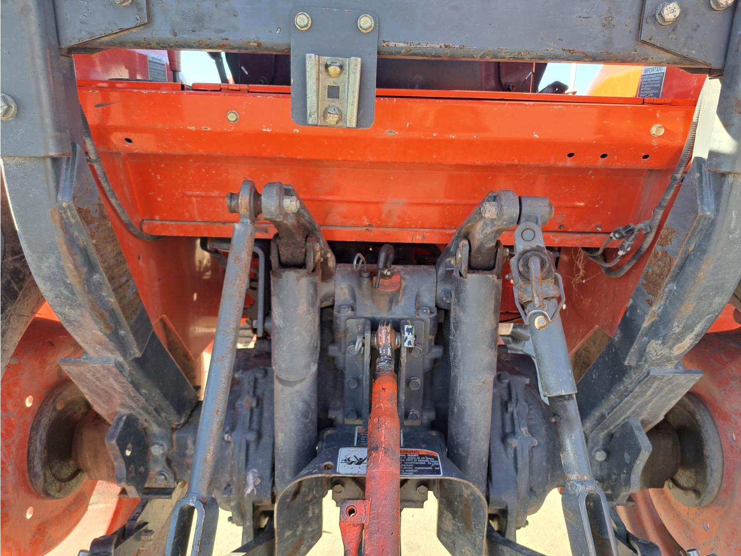 Kubota LA723 loader, 71 inch bucket, Kubota 1.6 L 3 cylinder 35 HP, diesel engine, 28 PTO HP, hydro 3 range transmission, open station platform, joystick, 540 PTO, 3 point hitch, 10-16.5 front tires, 420/70-24 rear tires