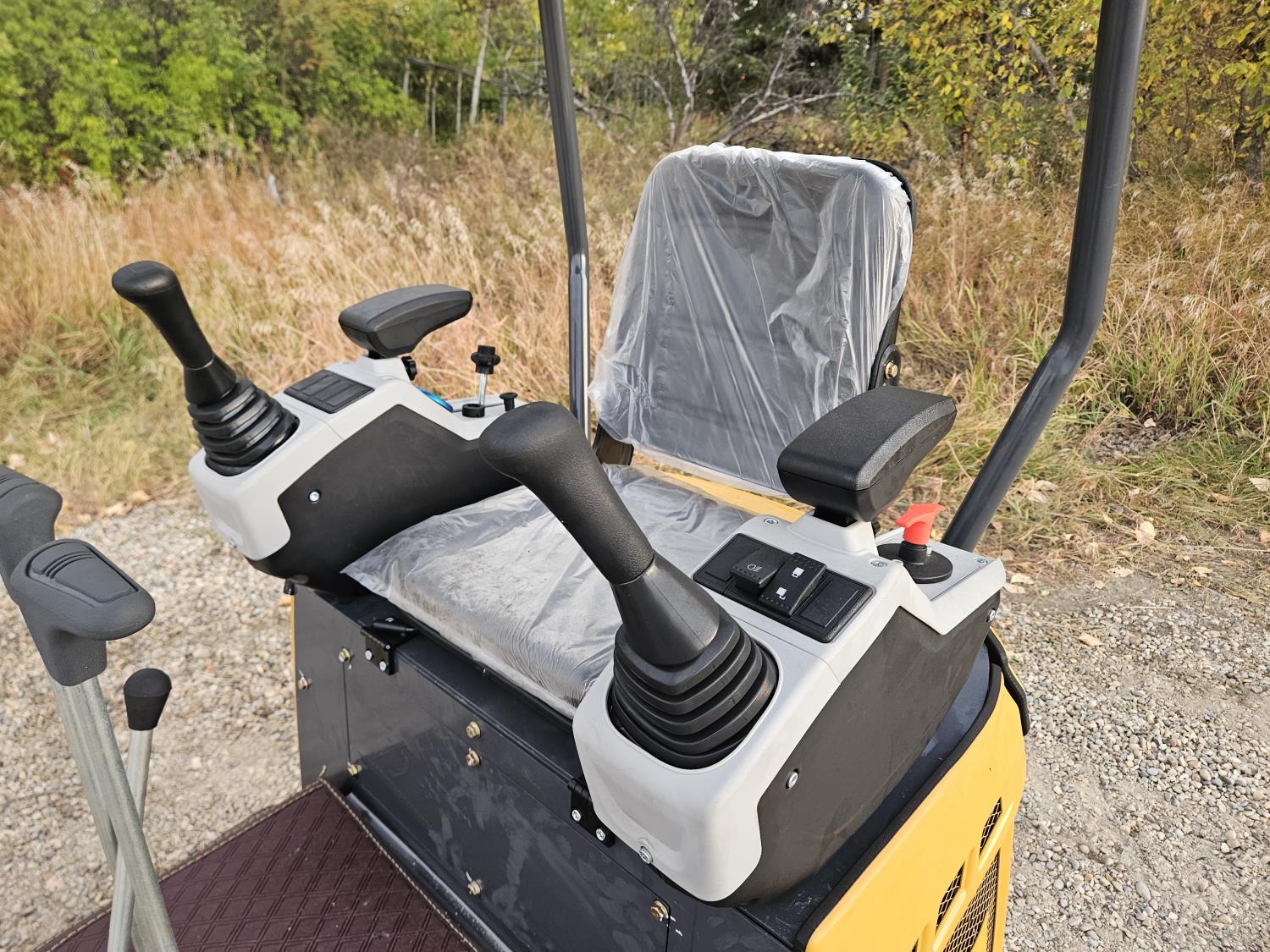 Open station, 739cc gas engine, 16 inch dig bucket, hydraulic thumb, 32 inch stick, backfill blade, 7 inch rubber tracks