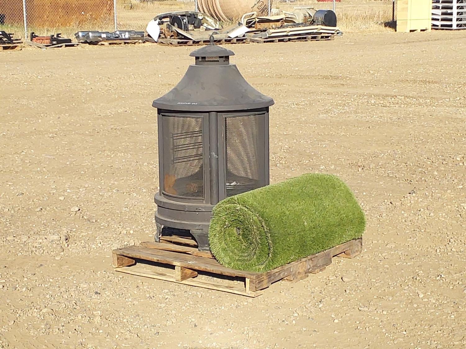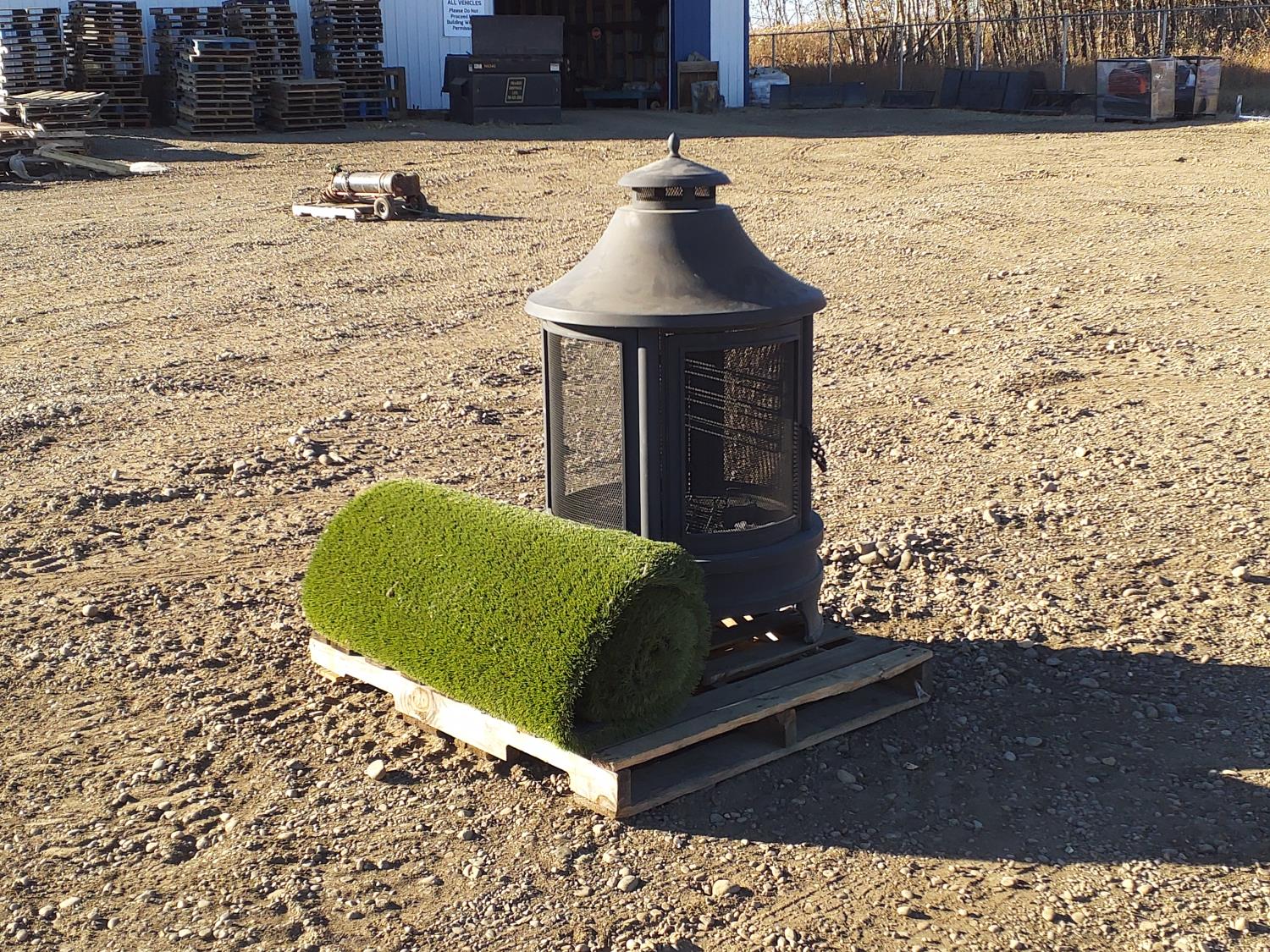 236 Patiozone Outdoor Fire Pit & Roll of Artificial Grass