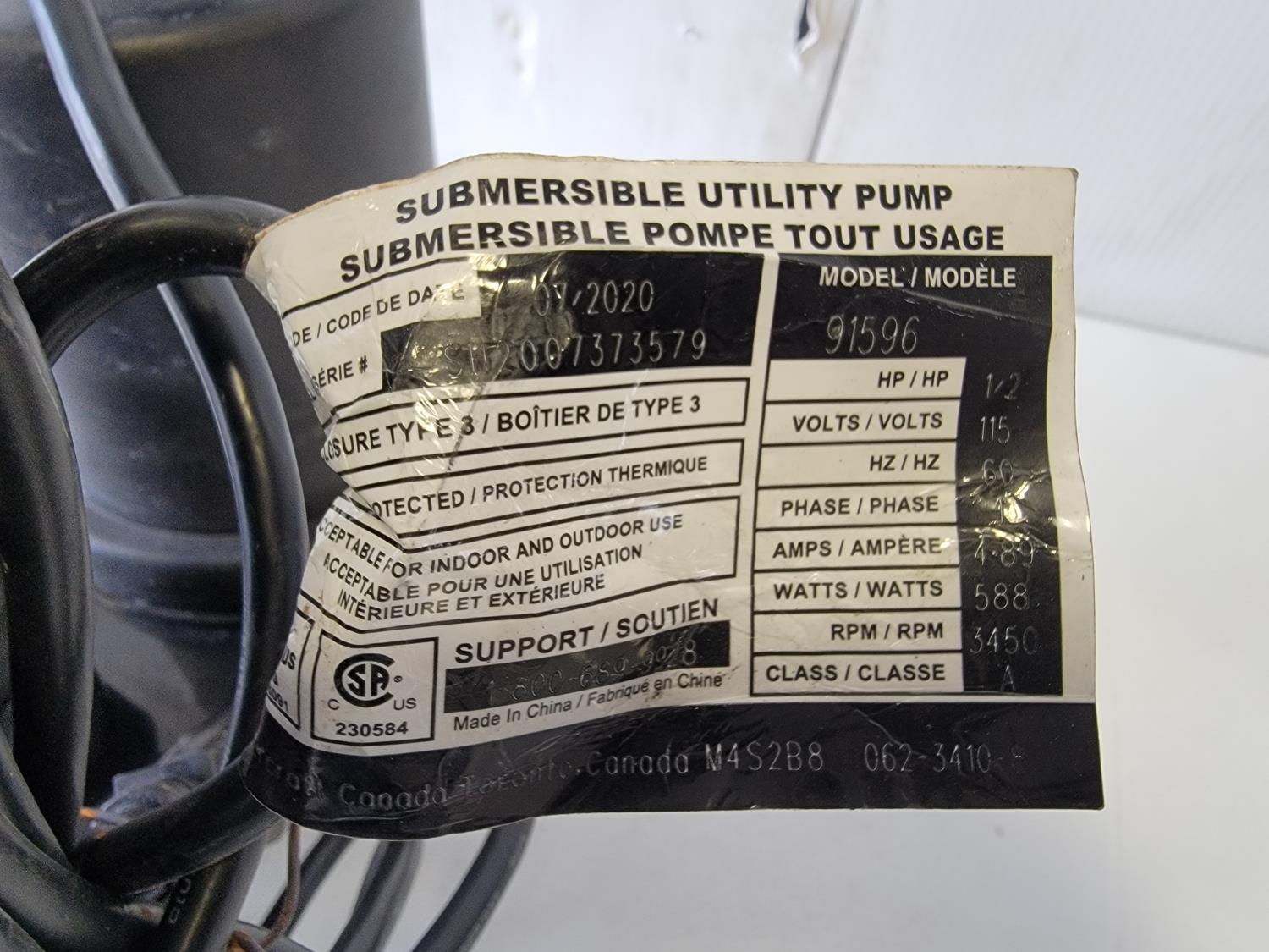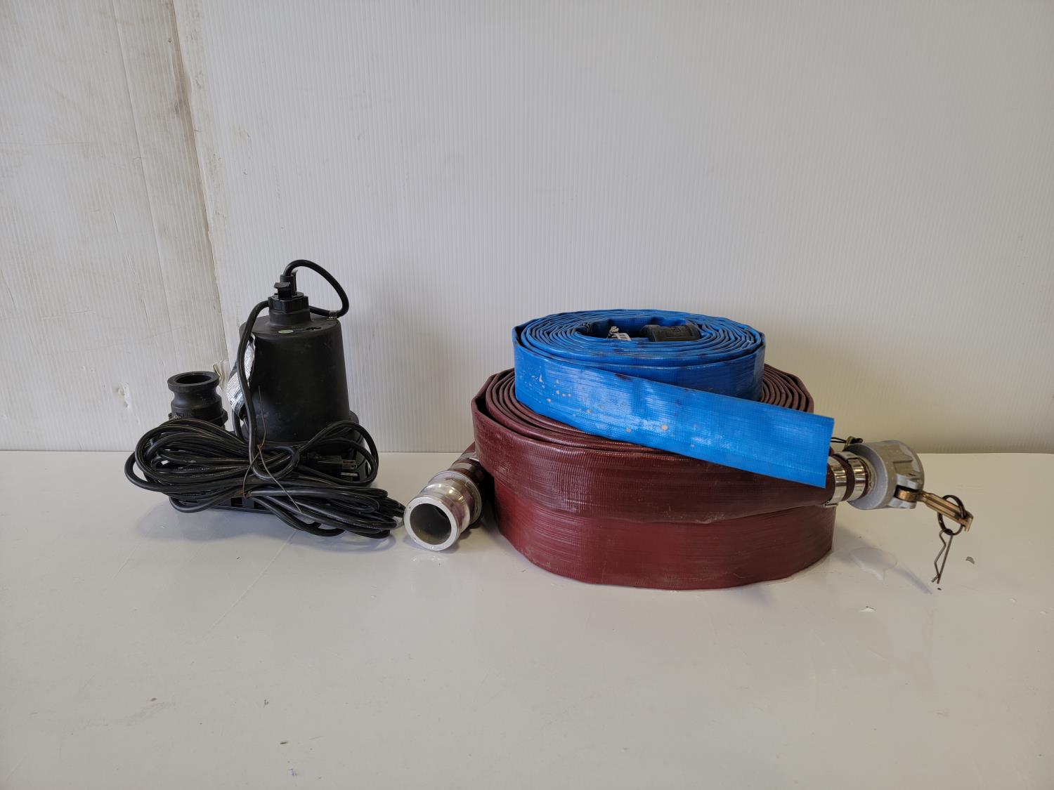5166 1/2 HP Submersible Utility Pump and (3) 2 Inch Discharge Hoses