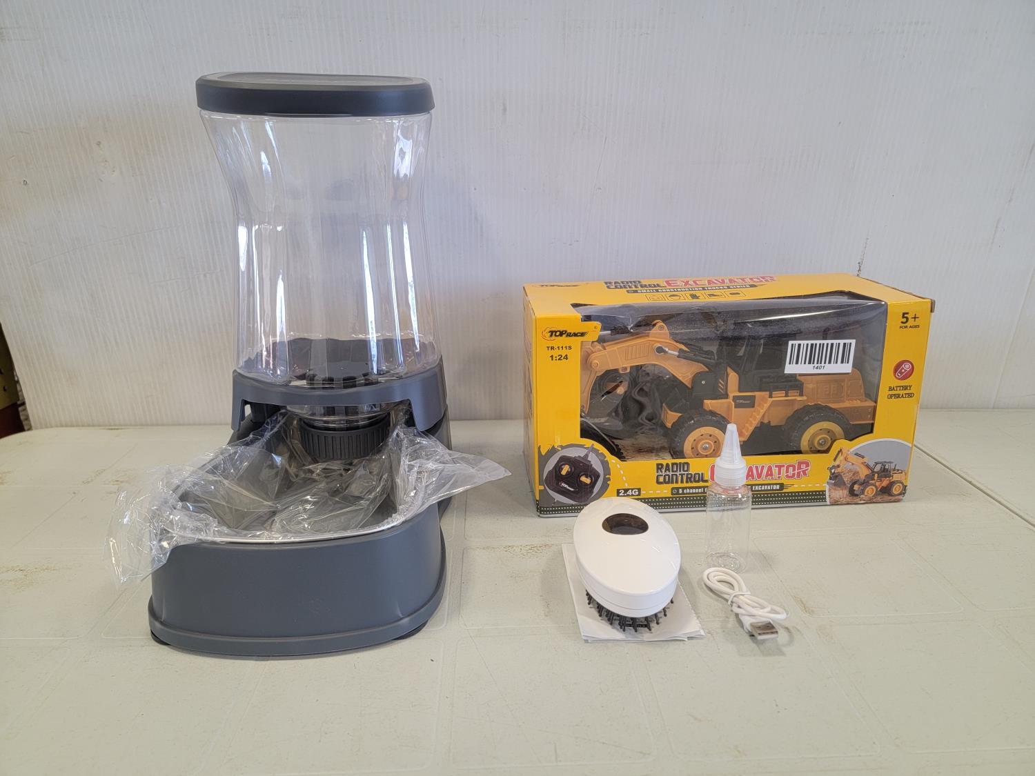 5299 Pet Feeder, Remote Controlled Excavator and Pet Brush (Unused)