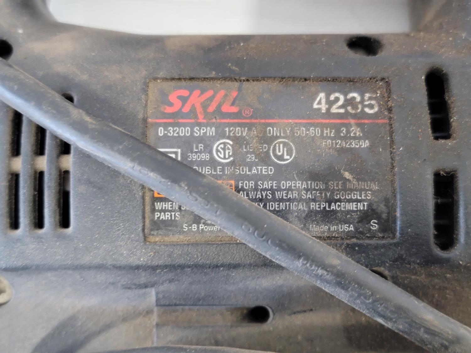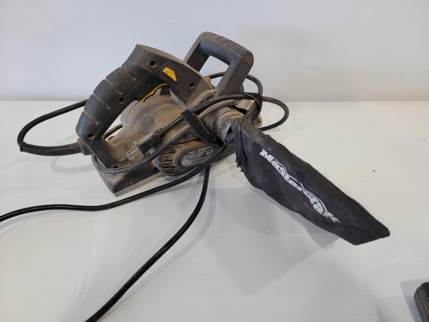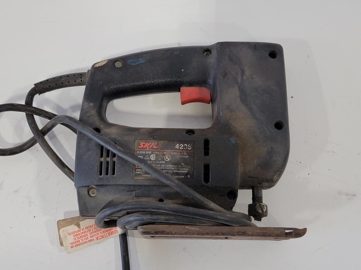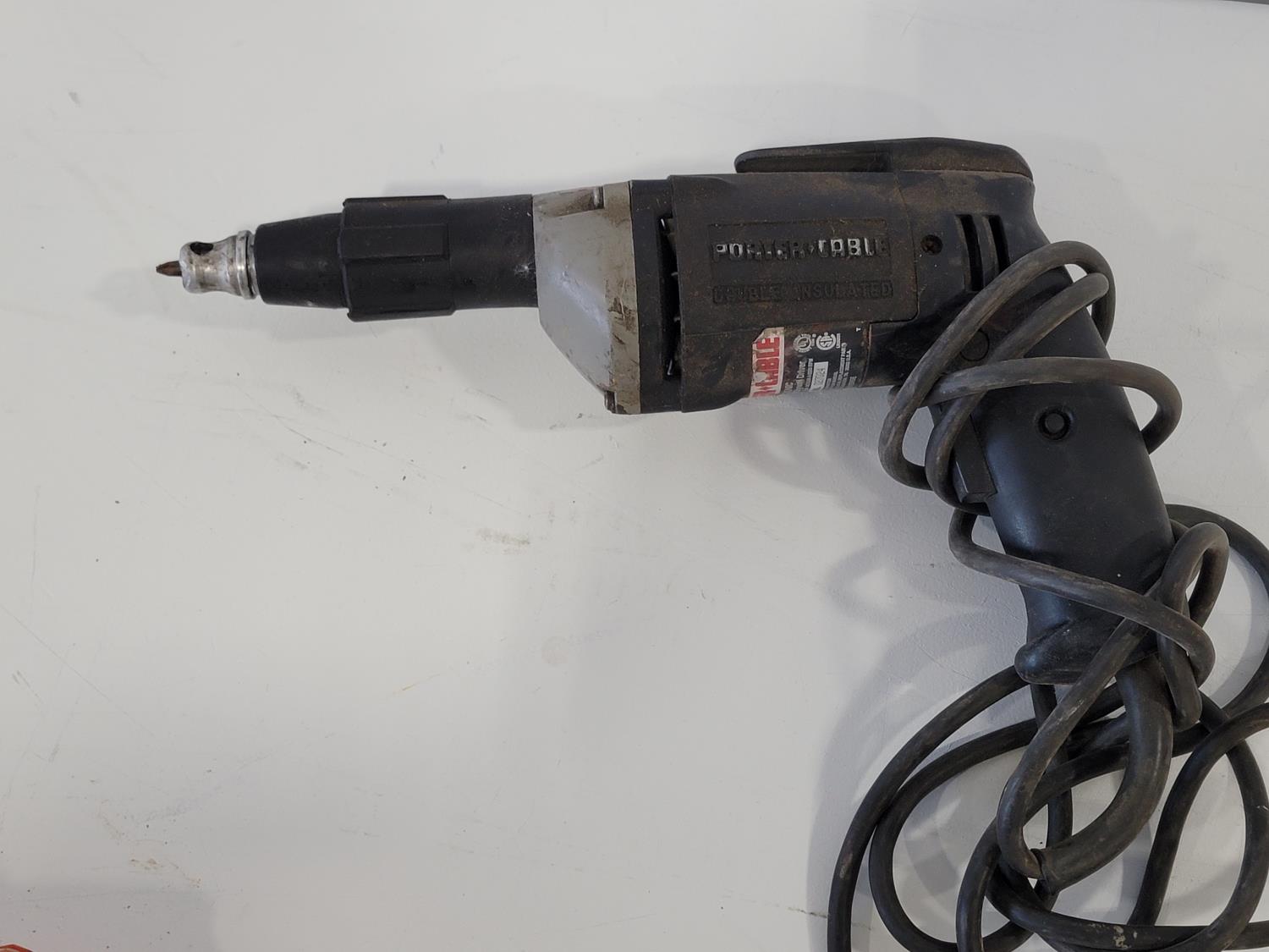 Horse shoes, caster wheels, Mastercraft planer, Mastercraft rotary trim saw, Porter Cable drywall driver, Black & Decker drill, Skil jig saw, Black & Decker jig saw