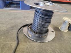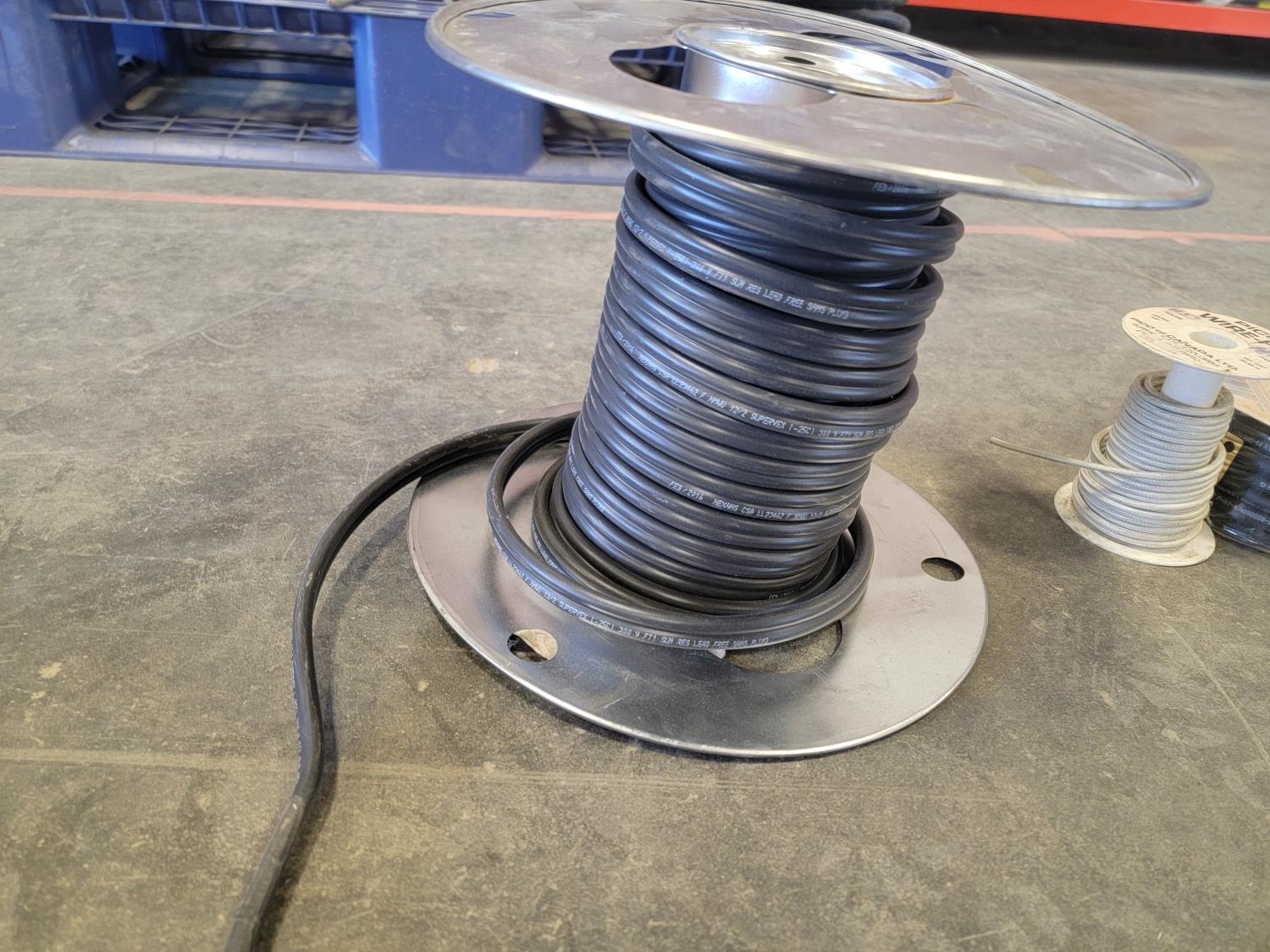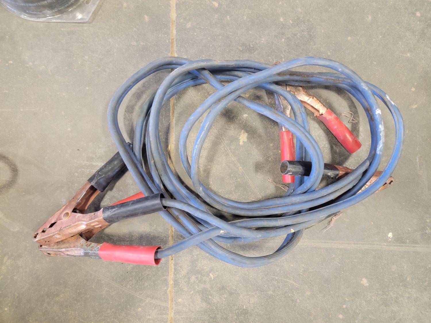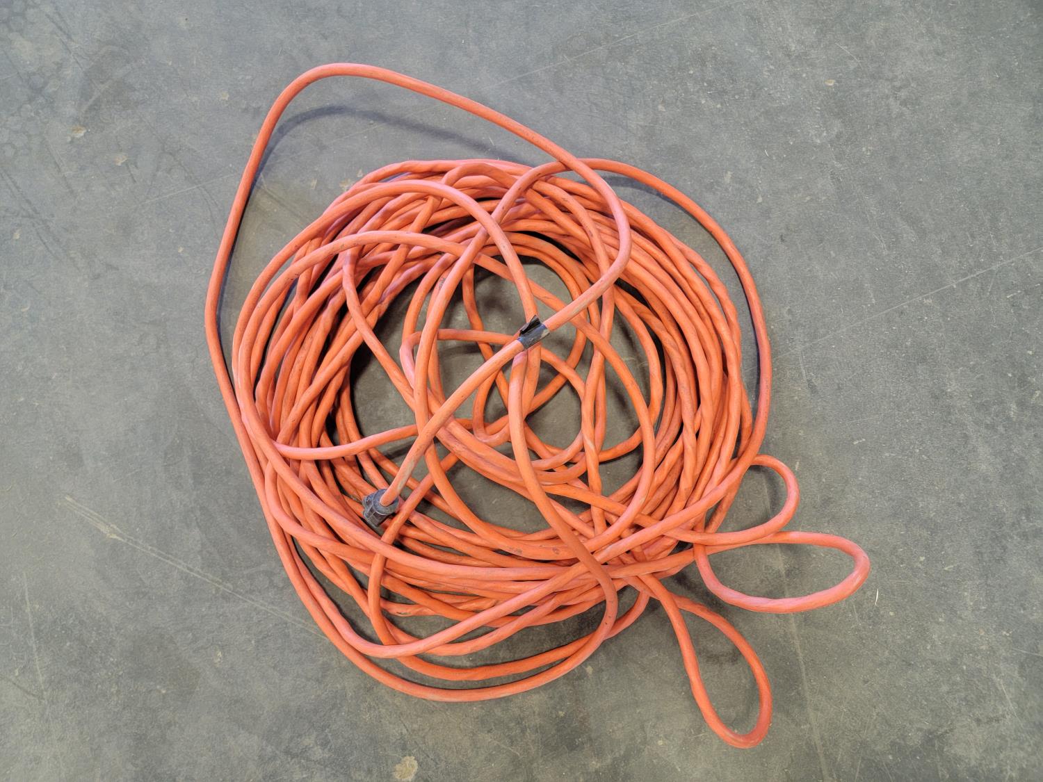 extension cords, booster cables, partial roll of electrical wire