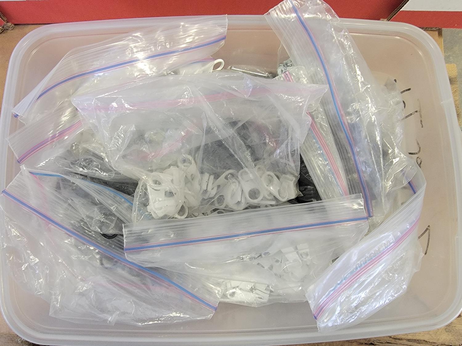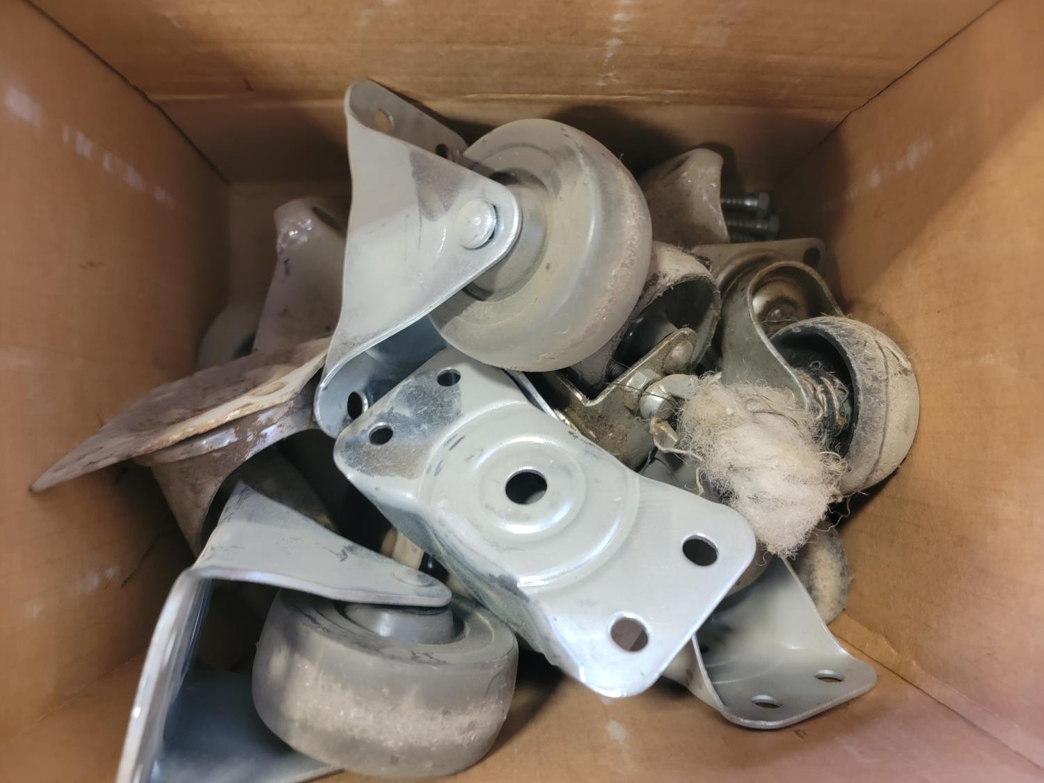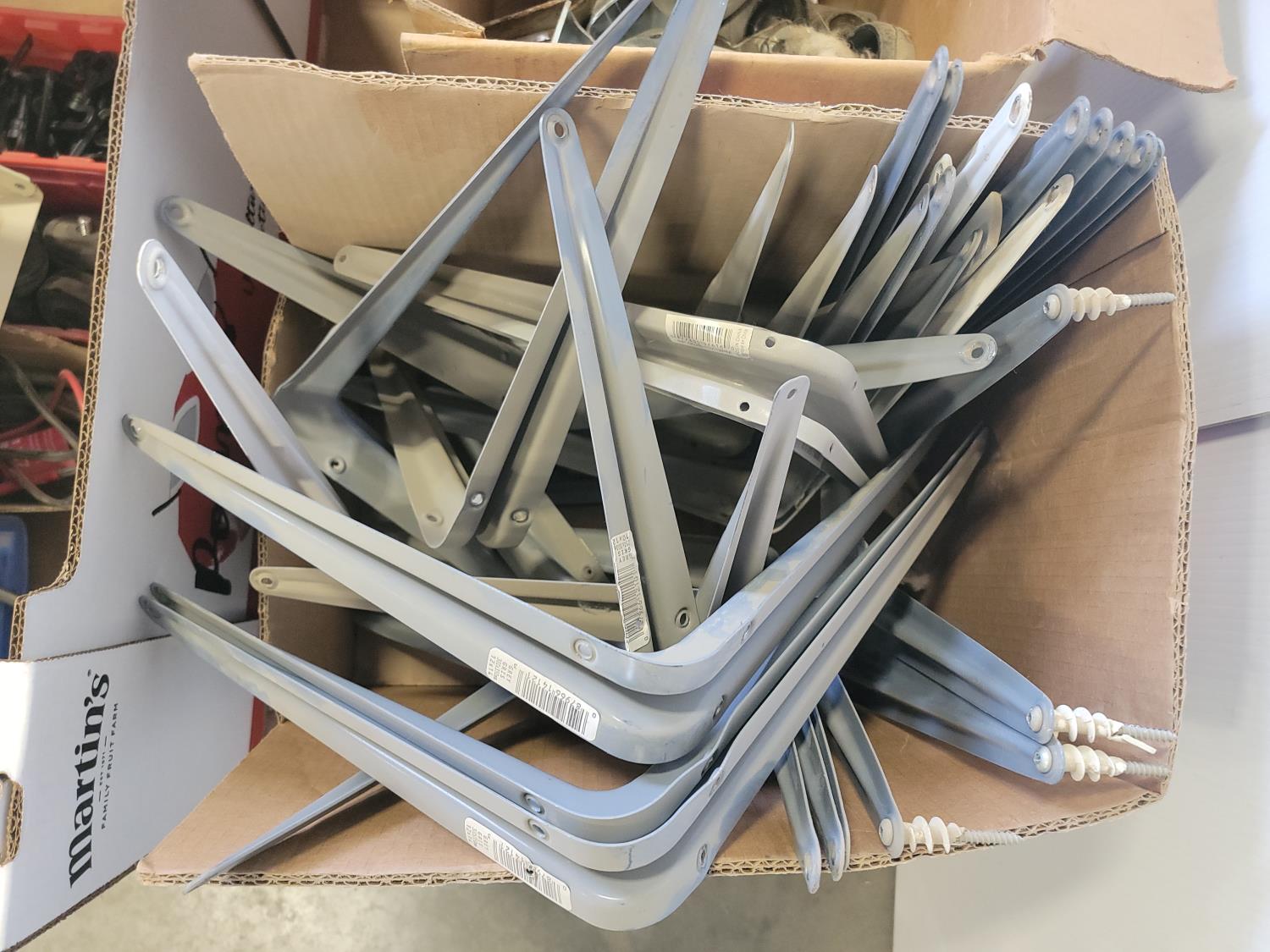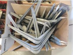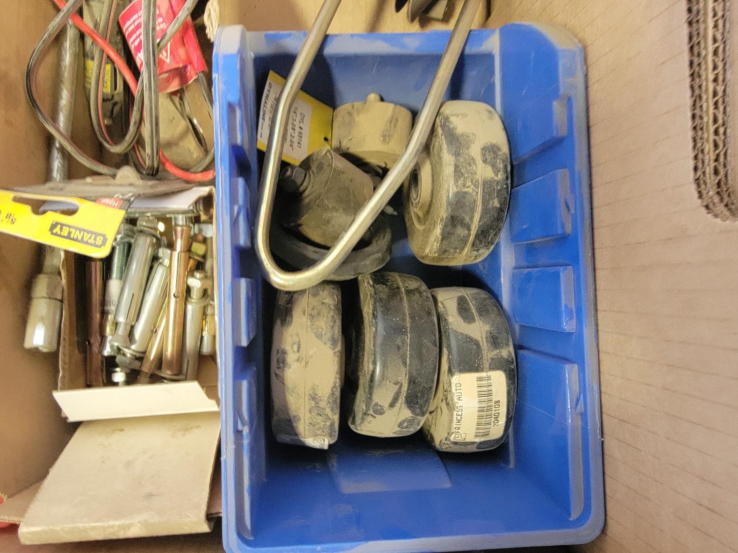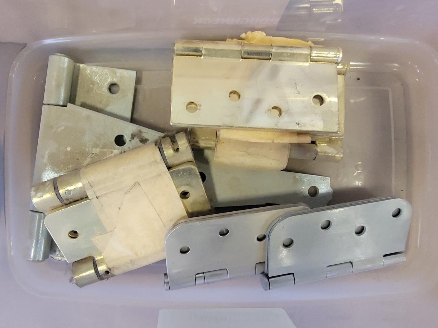 hinges, toilet paper holder, metal zipper pulls, shelf brackets, caster wheels, springs
