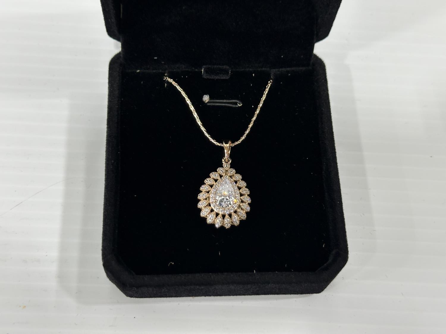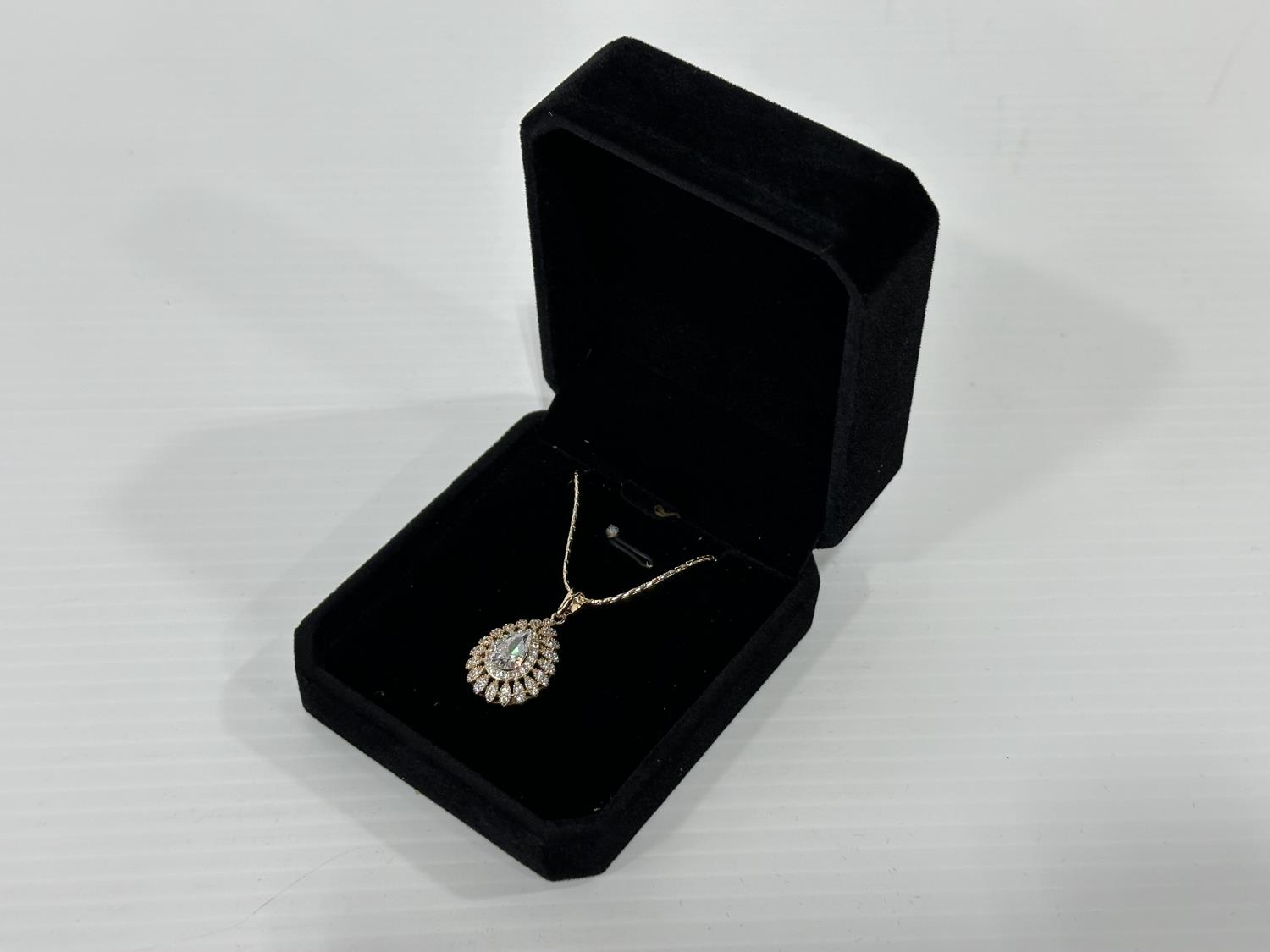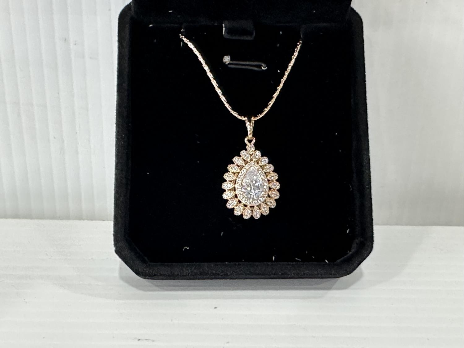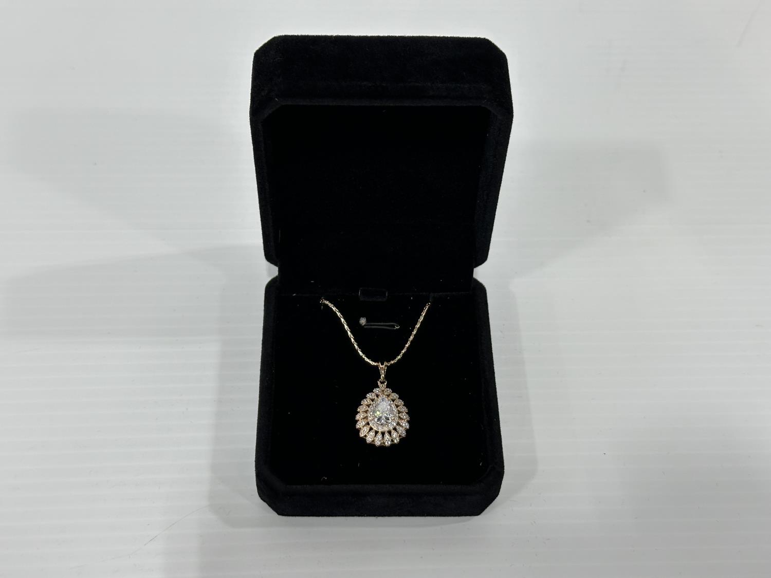 5023 Smartlife 18K Gold Plated 2.0 Ct Pear Cut Simulated Diamond Halo Necklace (Unused)