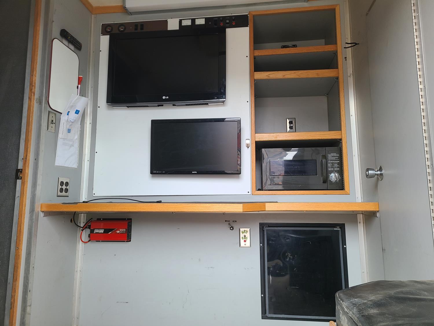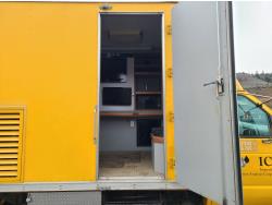 Ford 7.3 L diesel engine, automatic transmission, tow/ haul mode, A/C, 18 ft service box, safety lighting, 225/75/ R16 tires; 3- CCTV built in DVR cameras. Office area equipped with: RV-style A/C and heating, (3) computer monitors, refrigerator, microwave, onboard air compressor plumbed to hose reel, 1,500 lb Davit crane, 30-gallon water tank with pump and spray hose. Power System: Yanmar 125-DS 3 cylinder 12.5 kW diesel generator with single or three phase power. Generator is wired to truck electrical system and fuel direct from truck tank. (Documentation and operating procedures available for review)