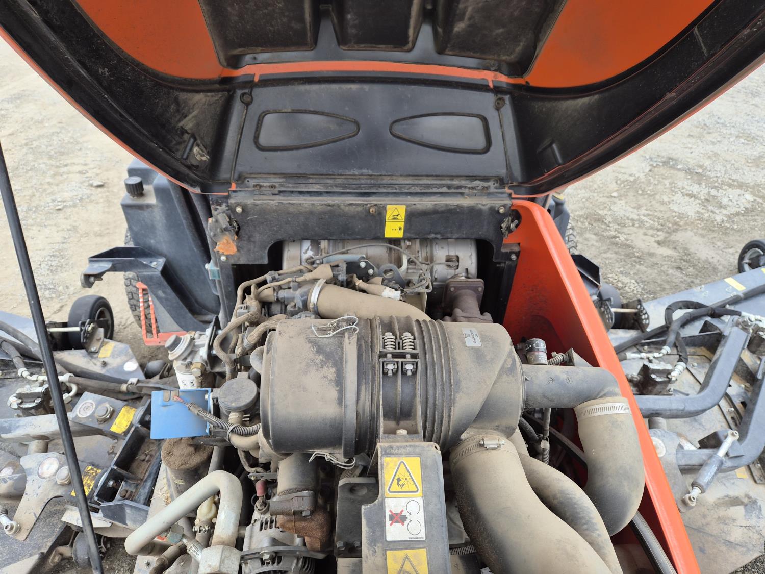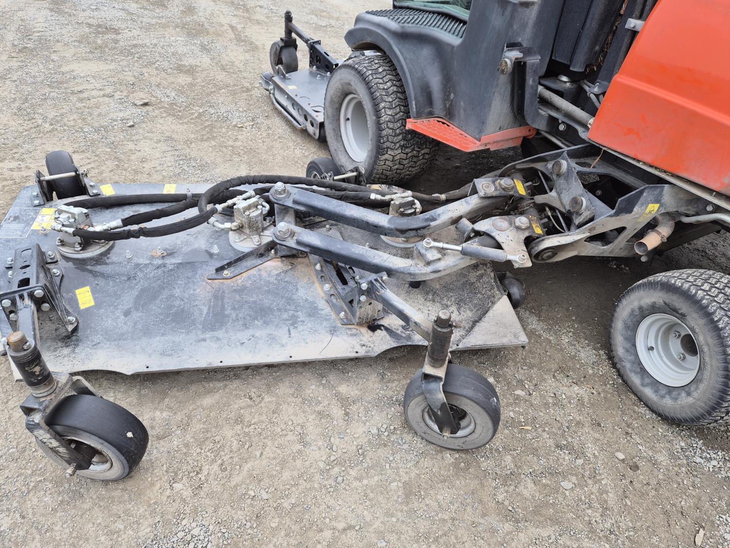 Front deck with 2- wing decks, 192 Inch cutting width, Kubota V3307-CR-E4B 4-cylinder, turbo diesel, SureTrac™ hydrostatic traction system, tilt sensor, enclosed ROPS cab, Red Dot A/C, adjustable suspension seat and armrest-mounted controls
