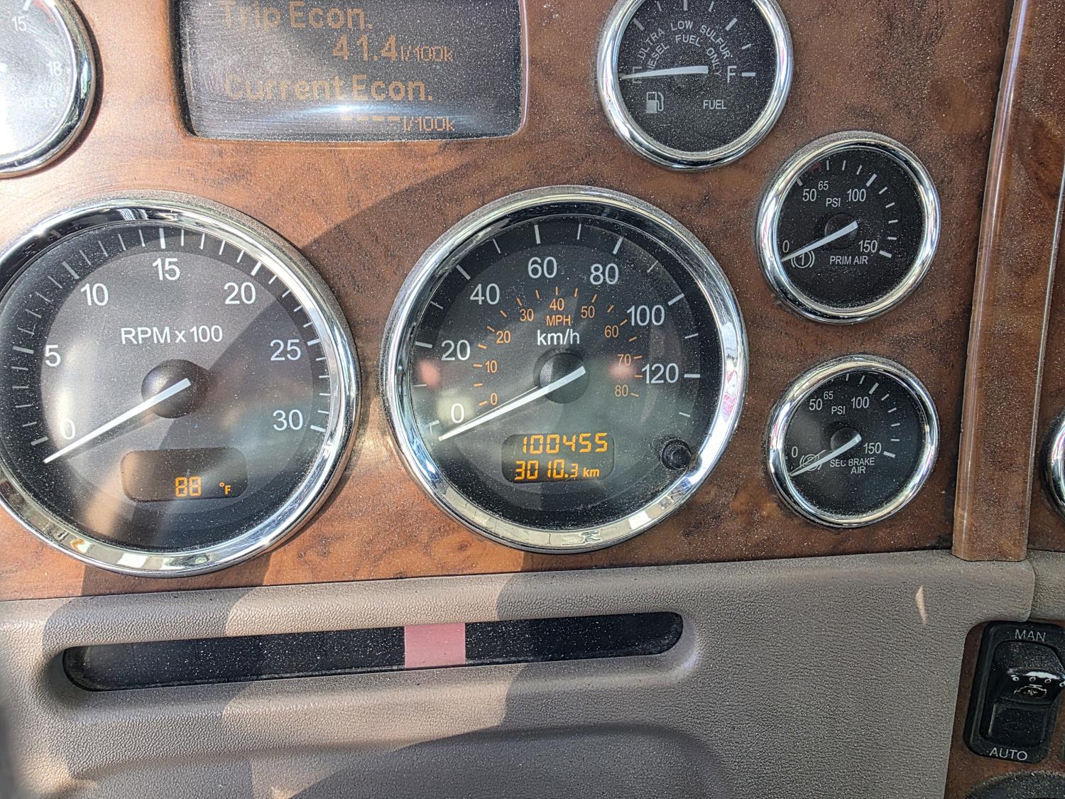 Cummins ISX 15 L 550 HP diesel engine, engine brake, Eaton Fuller 18 speed manual transmission, mid rise 72 inch sleeper, fridge, A/C, air ride driver seat, radio, 46,000 lb rear axles, full lockers, Regularly maintained with many repairs - documents available. Most recent major work is an Engine overhaul done in October 2024 including replace main bearing, removed head, clean cylinder head, changed #1 and #2 injectors, inspect camshafts and rockers (all looked good) overhaul kit with 152mm liners. Documents provided. , 11R-22.5 tires
