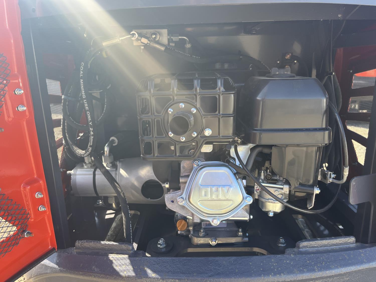 pilot controls, Zonsen 17HP gas engine, 16 inch dig bucket, manual thumb, 1 auxiliary hydraulics, backfill blade, rubber tracks