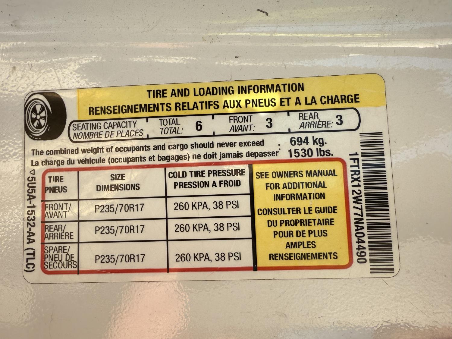 - 1FTRX12W77NA04490