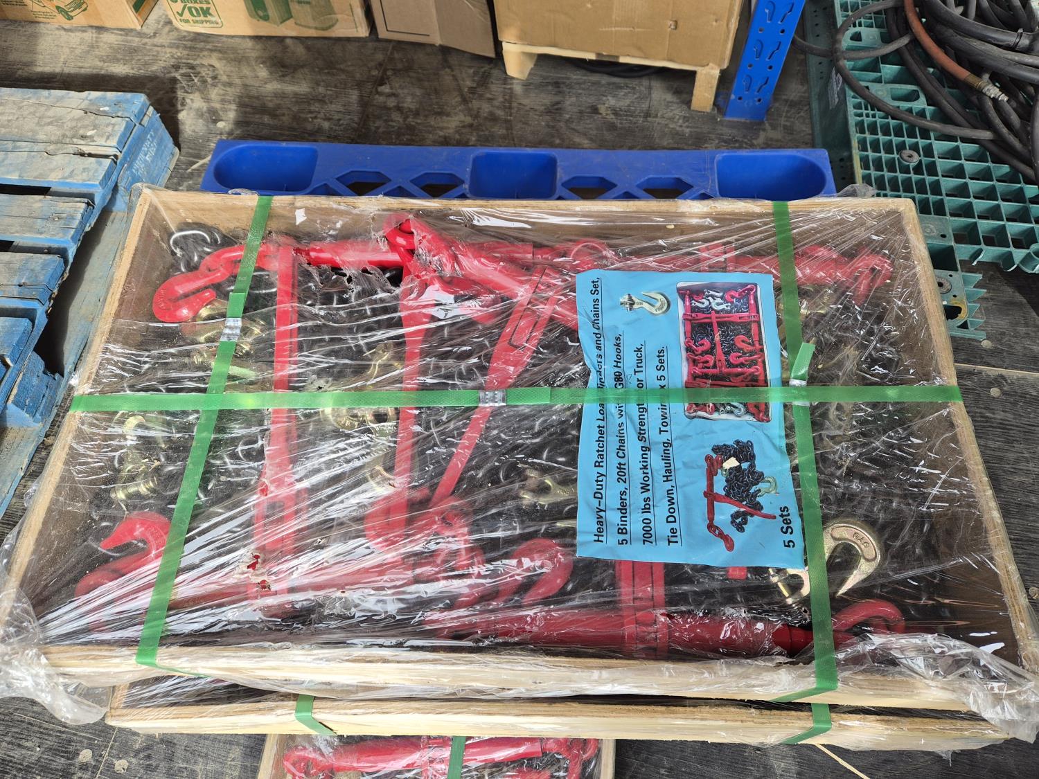 86 (5) Heavy Duty Ratchet Load Binders & Chains (Unused)