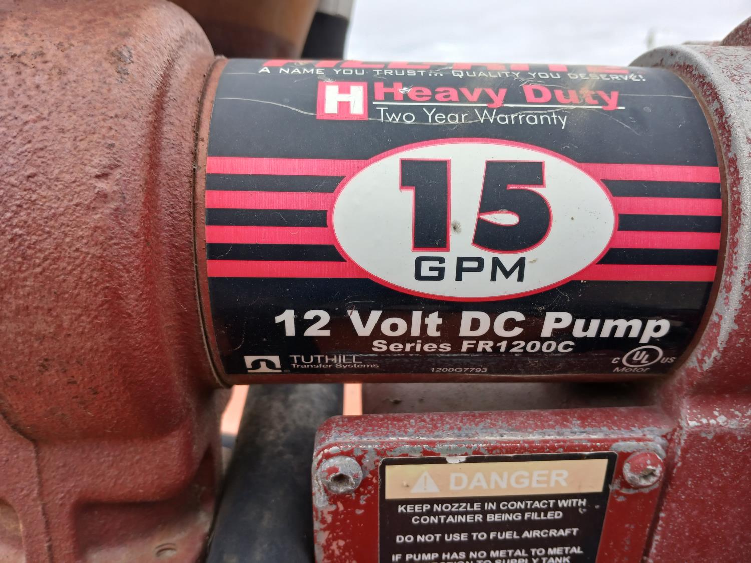 Fuel capacity approximately 145 gallon. Comes with 15 GPM Fill-Rite heavy duty 12volt DC pump with nozzle. (pump model FR1200C)