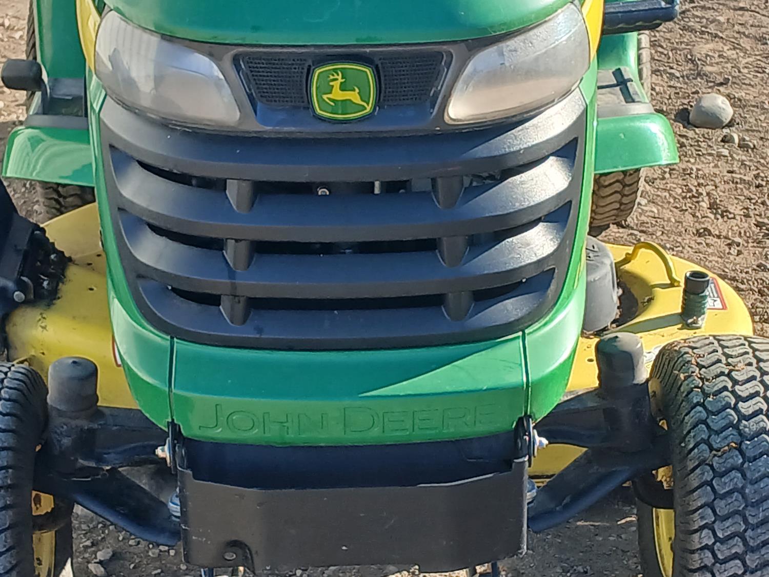 42 inch cutting deck, dual rear catch bags, (1) extra blower attachment, Kawasaki motor.