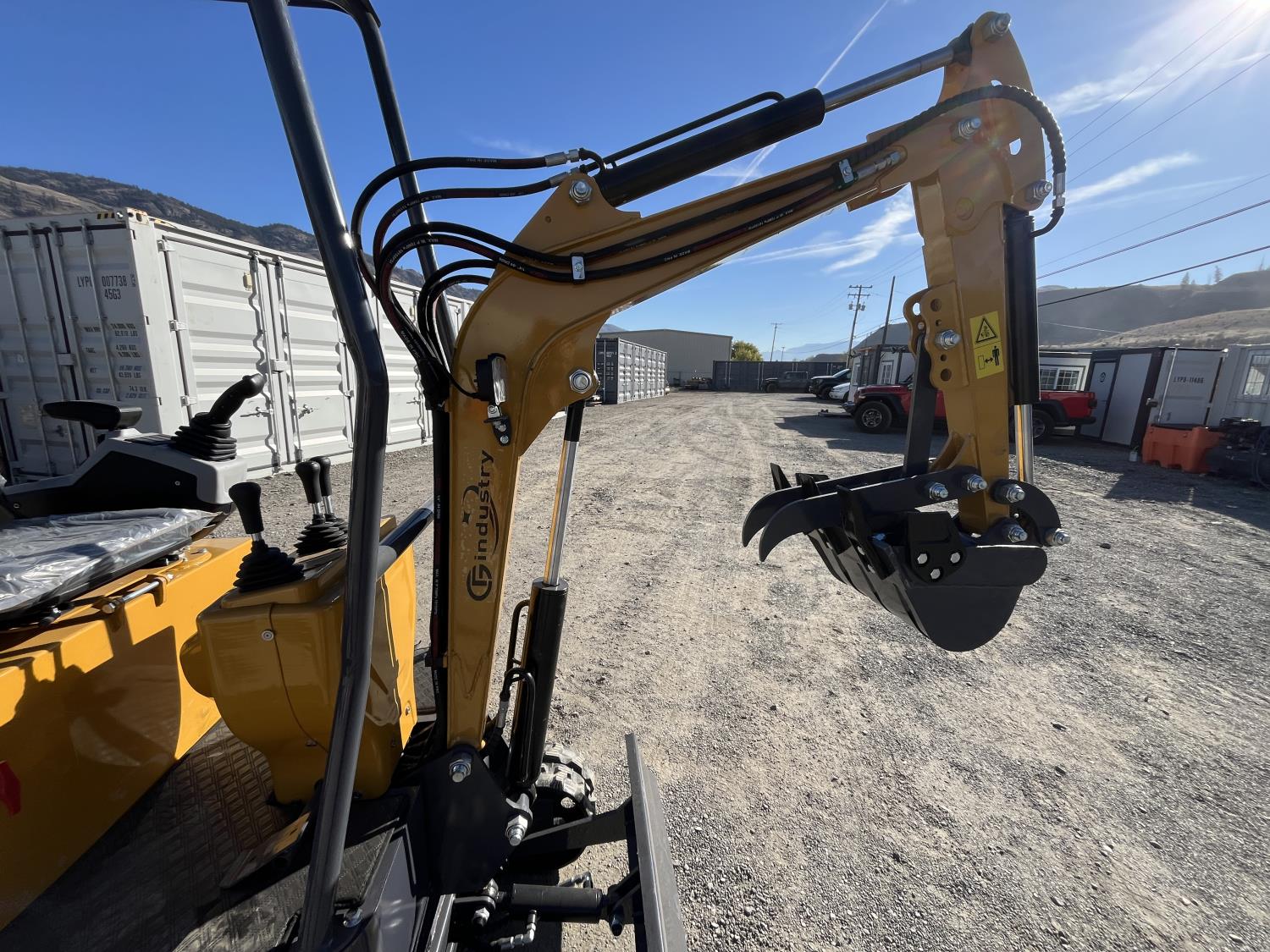 Open station, gas engine, 15 inch dig bucket, manual thumb, 2 Ft 8 inch stick, backfill blade, 7 inch rubber tracks