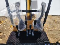 Open station, gas engine, canopy, 16 inch dig bucket, manual thumb, 1 auxiliary hydraulics, 2 Ft 8 inch stick, backfill blade, 7 inch rubber tracks
