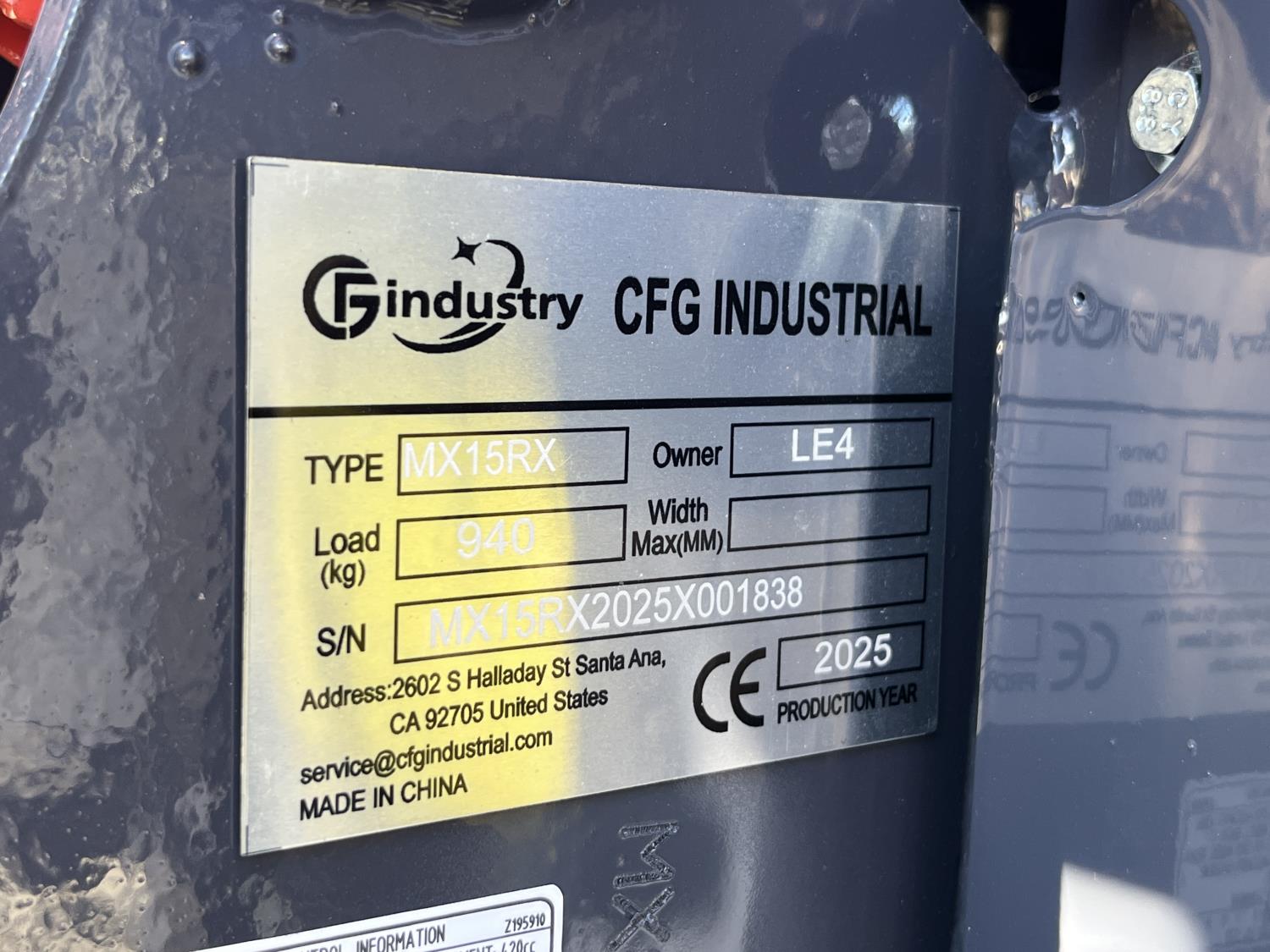 364 2025 CFG MX15RX Mini Excavator (Unused)