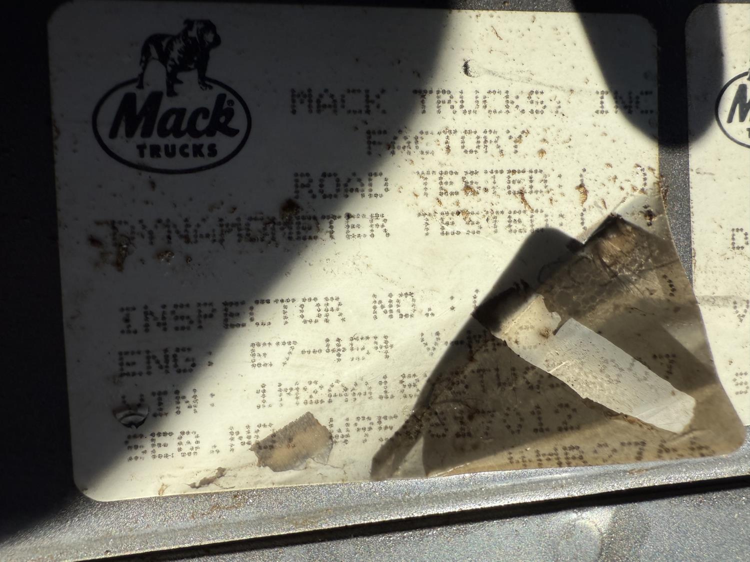 Mack E7-454 6 cylinder diesel engine, Mack 18 speed transmission, flat top 40 inch sleeper, air ride driver seat, hydraulic wet kit, air ride suspension, all aluminum wheels, 11R-24.5 tires
