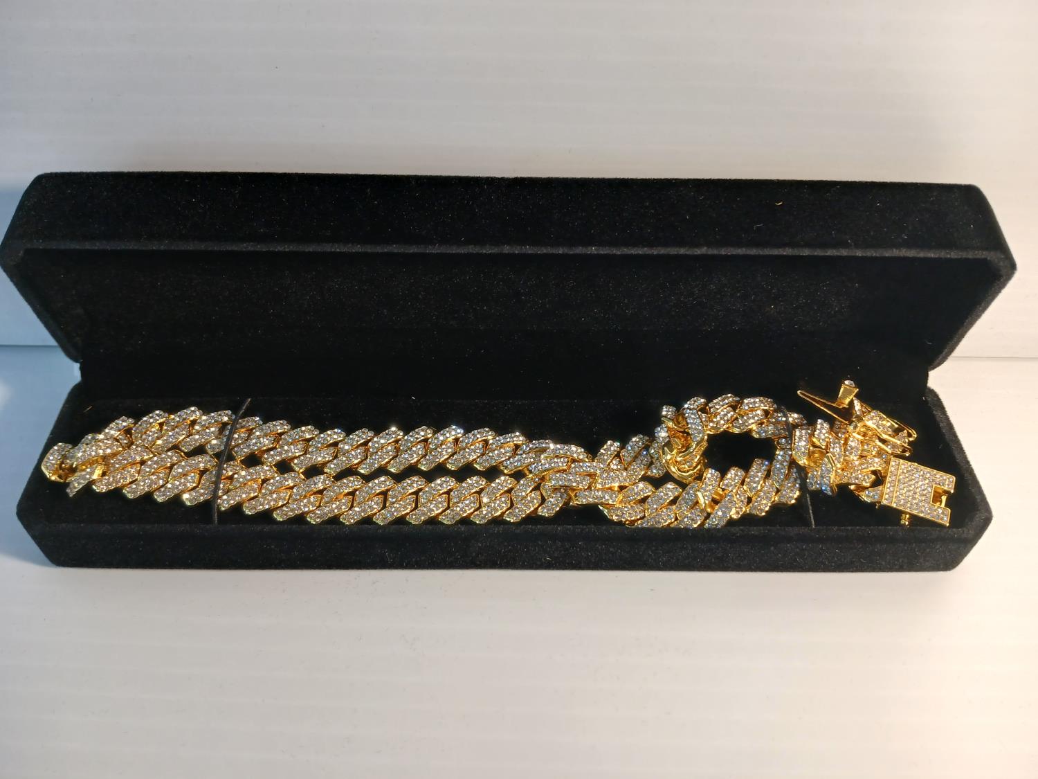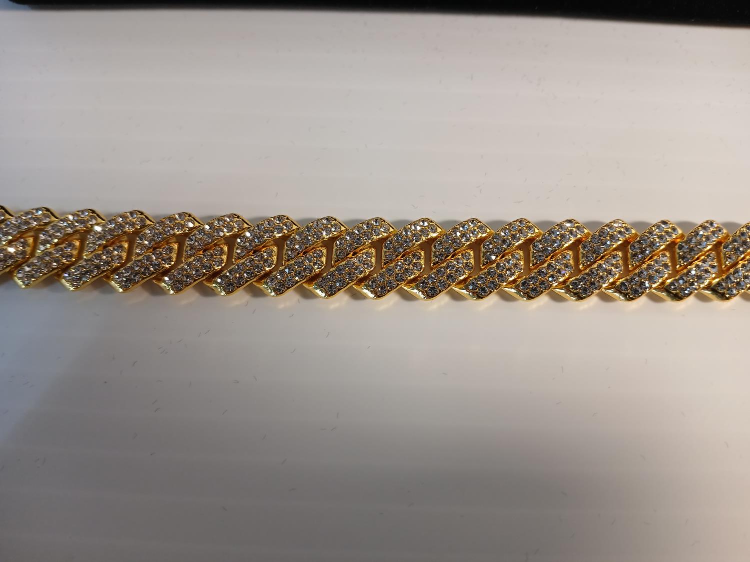 14.0 mm Simulated Diamond embellished Cuban style chain. 19.5 inch length.