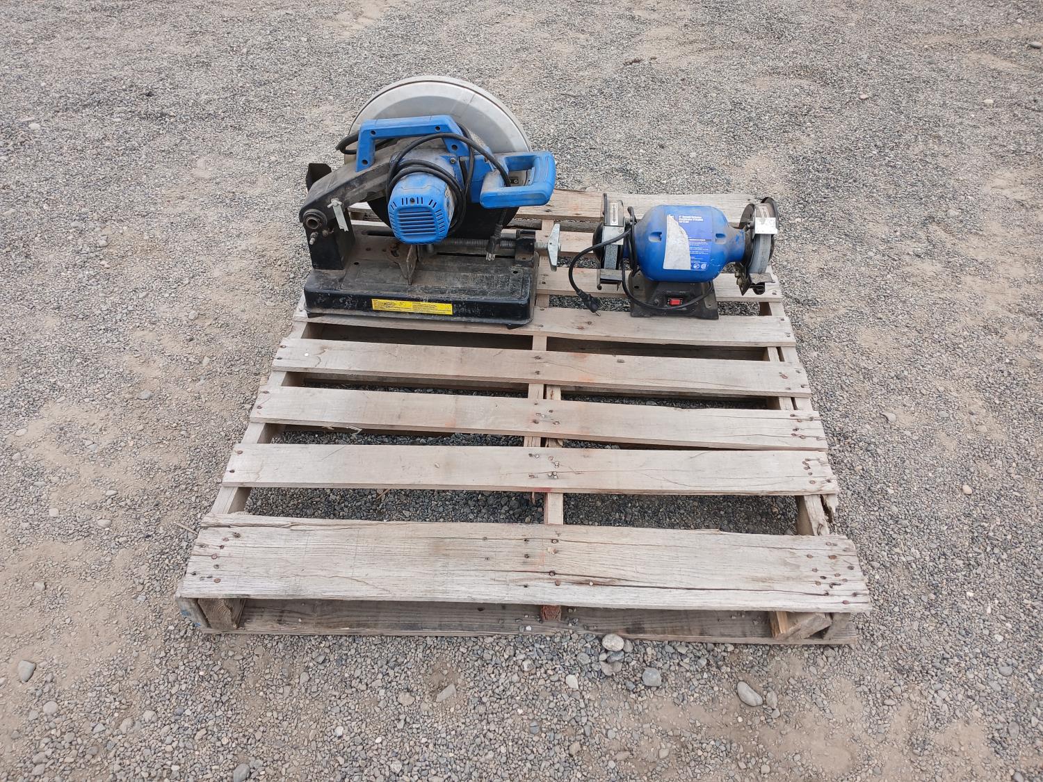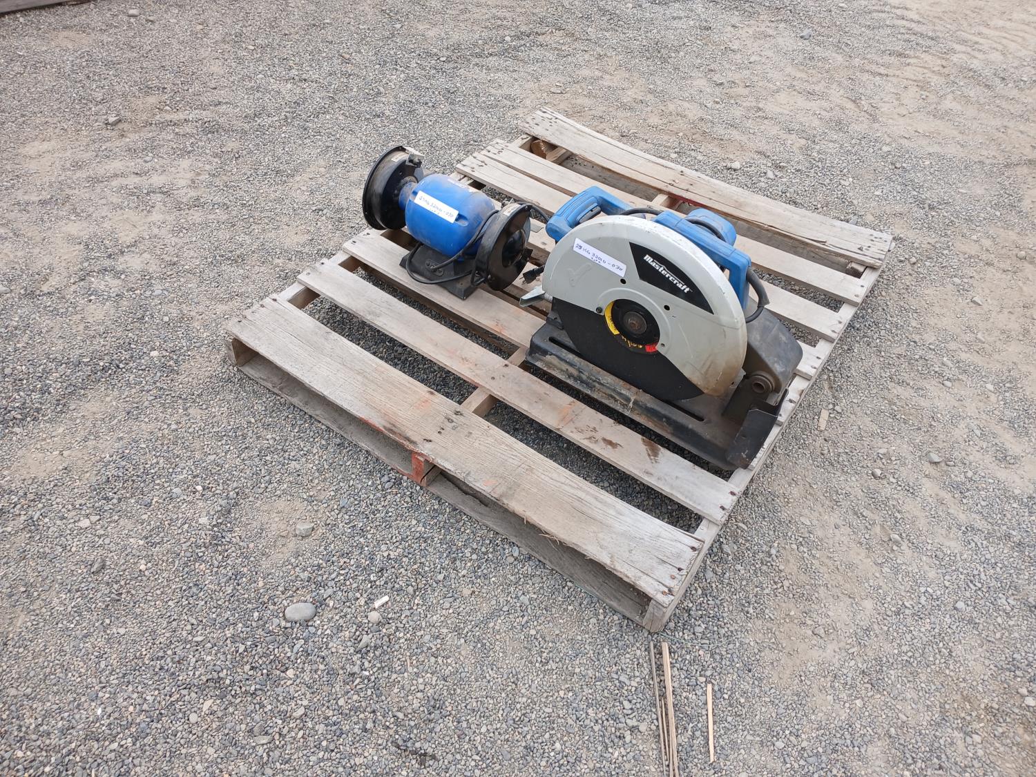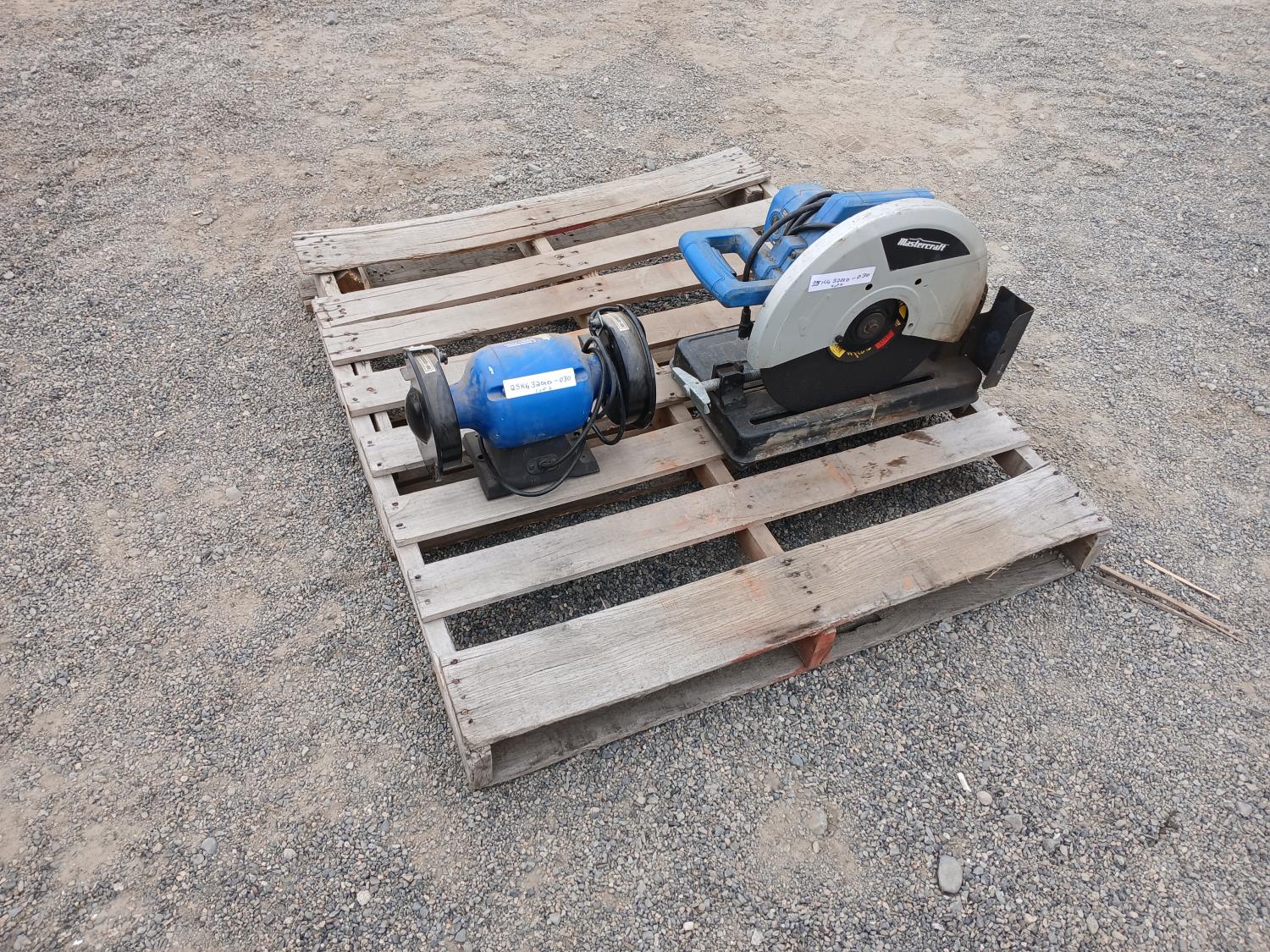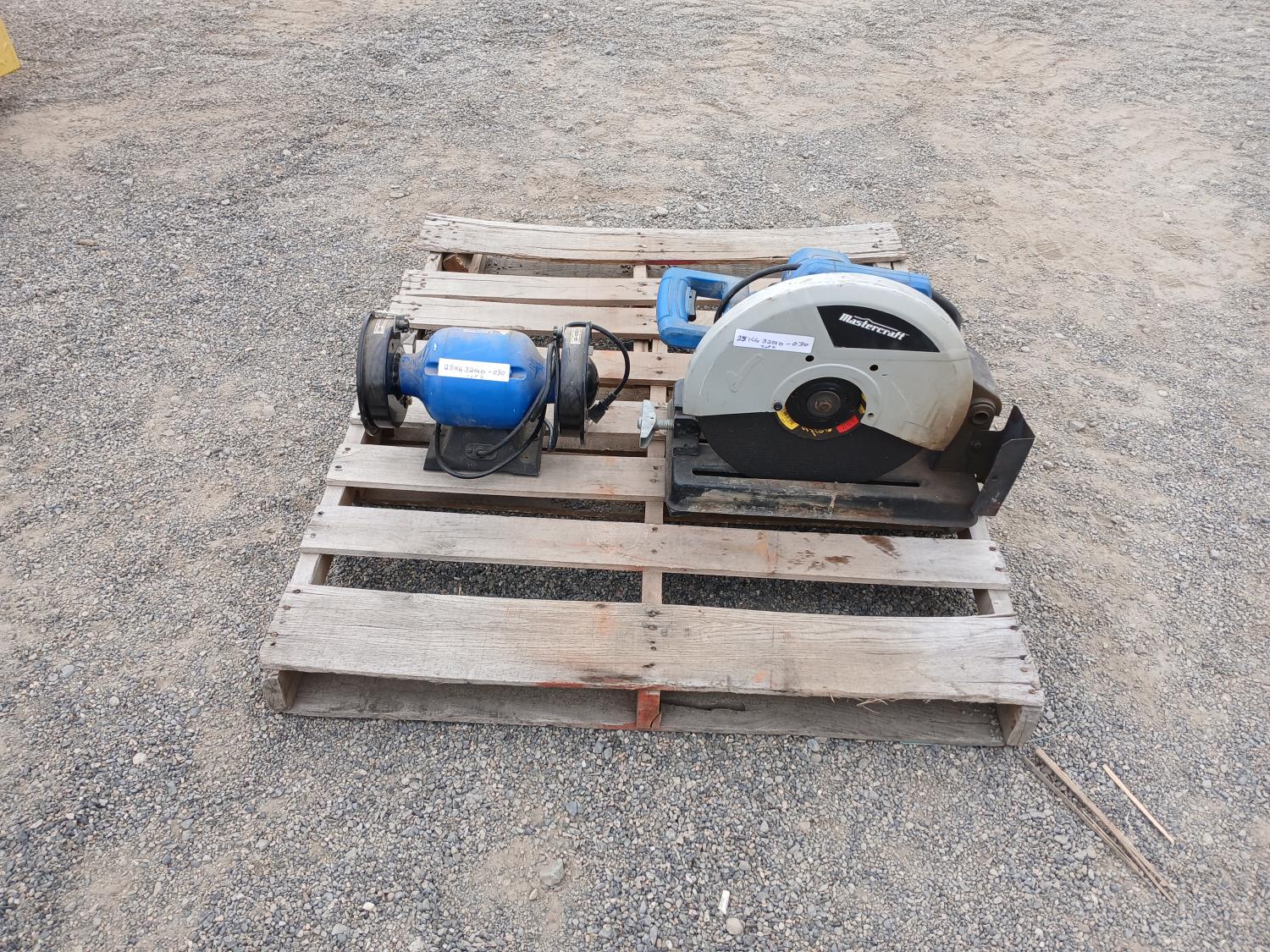 738 (1)Mastercraft 14 Inch Cut Off Saw, (1)Power Fist 6Inch Mountable Bench Grinder