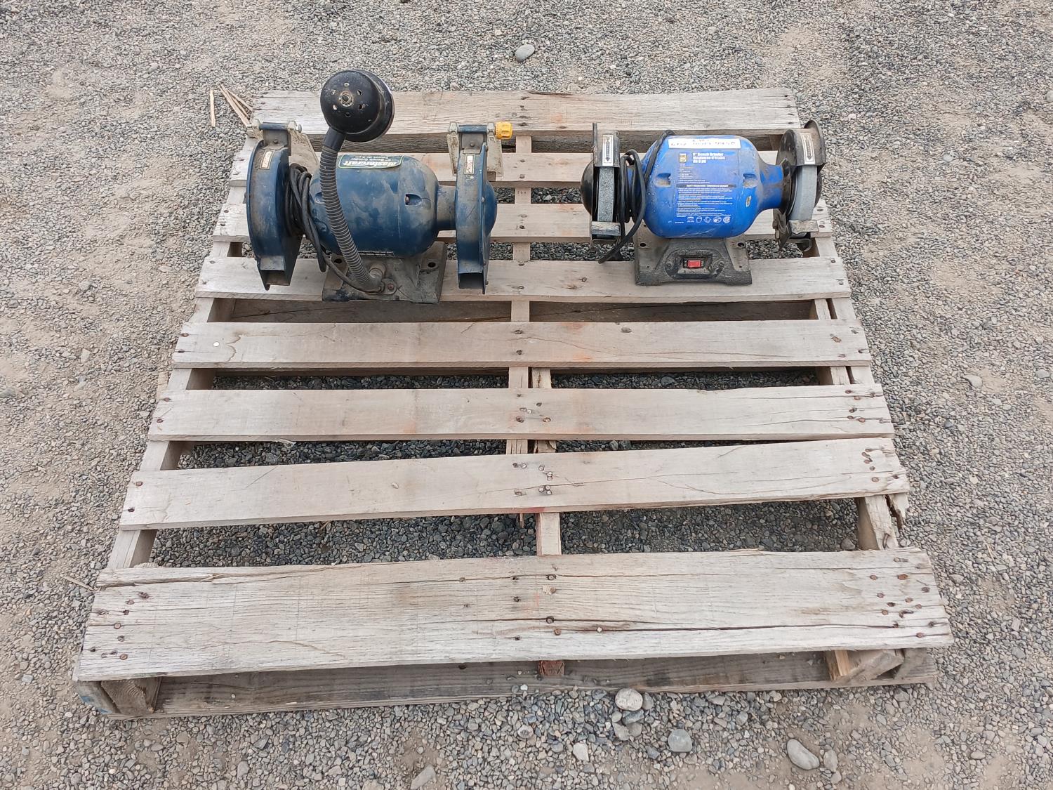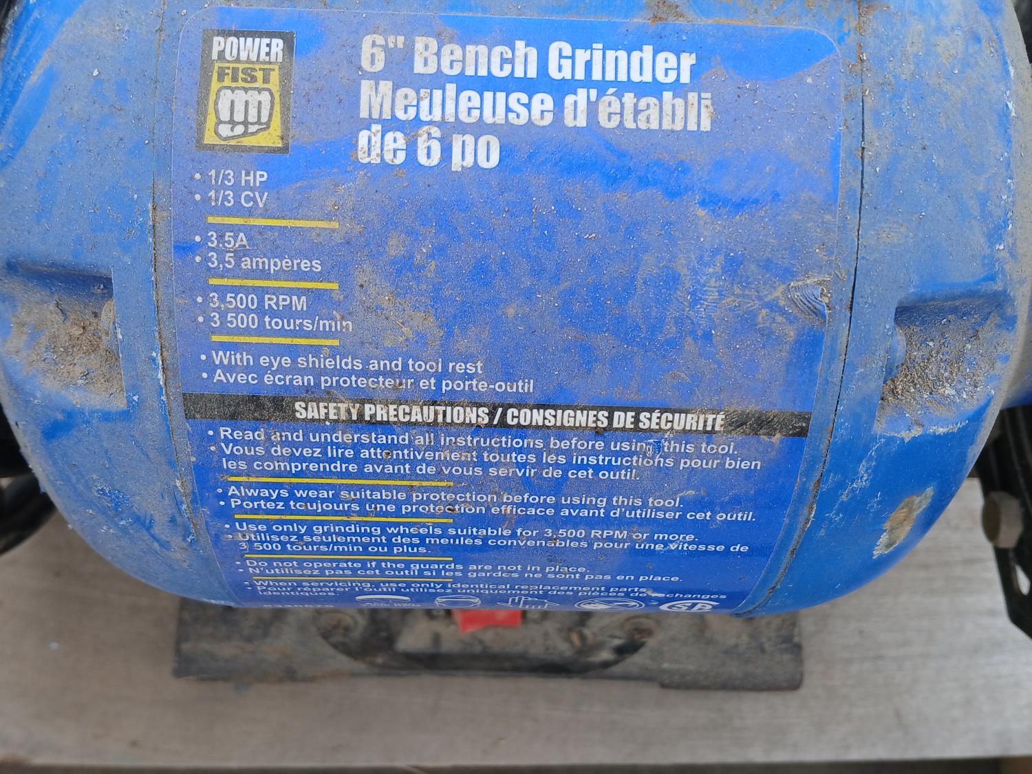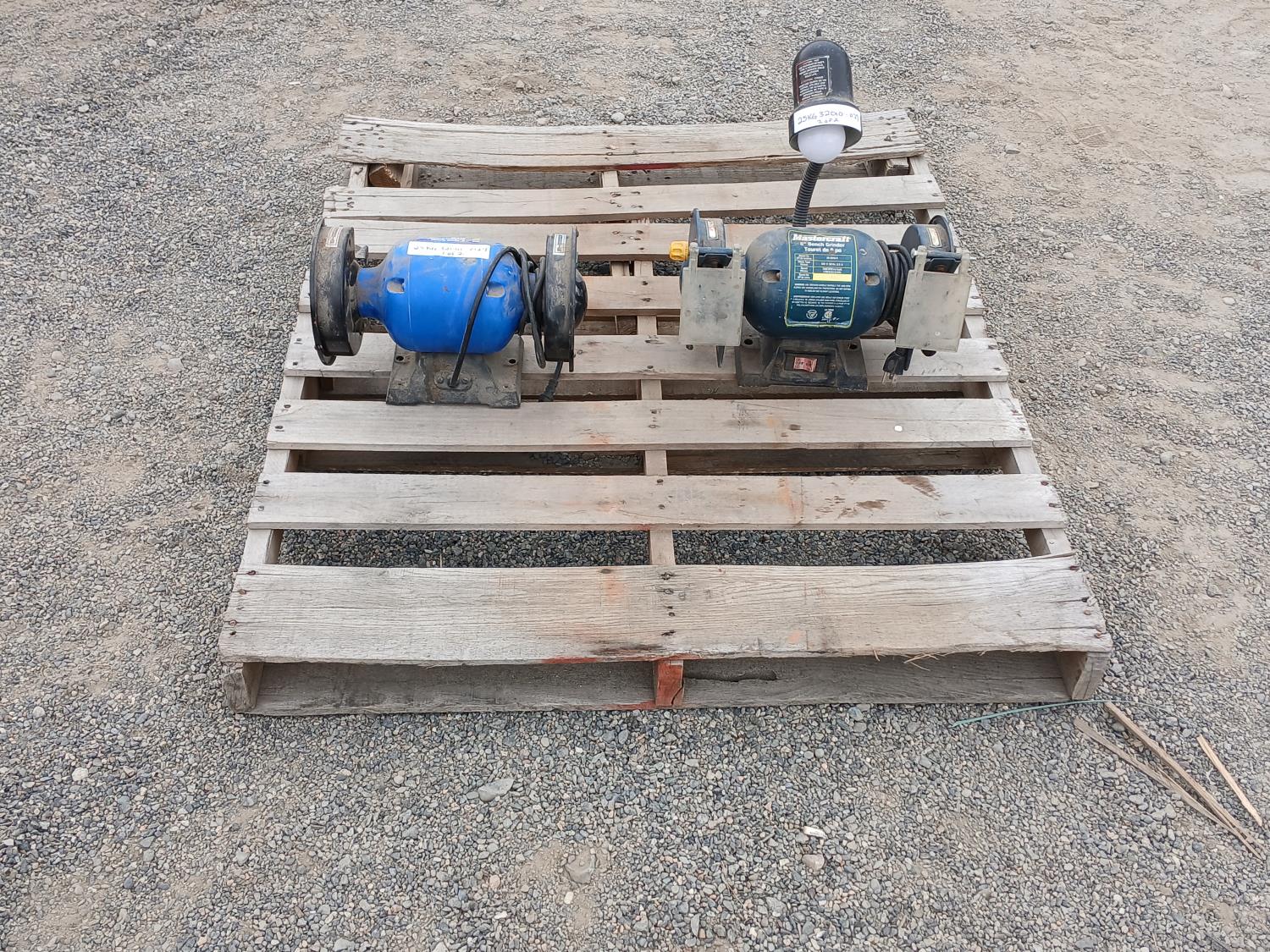 (2) 6 inch mountable grinders Power Fist & Mastercraft (One with task light). 1/3 HP, 3.5 a, 3,500rpm.