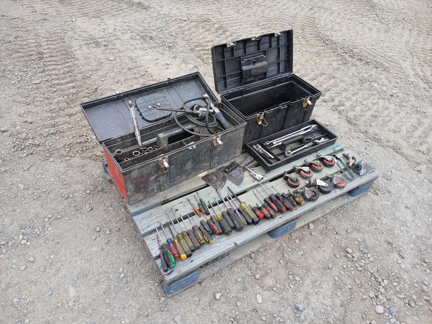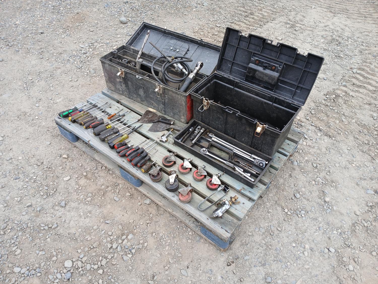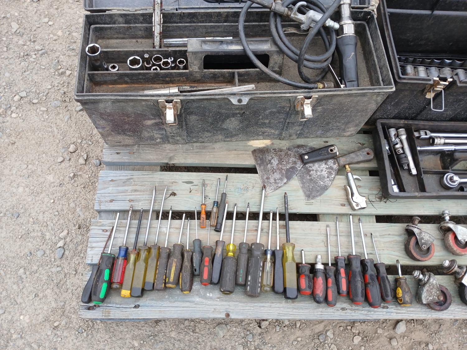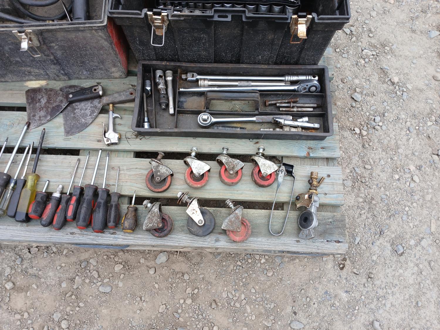 Large screw driver set, large wrench sets, casters, and many other miscellaneous items.