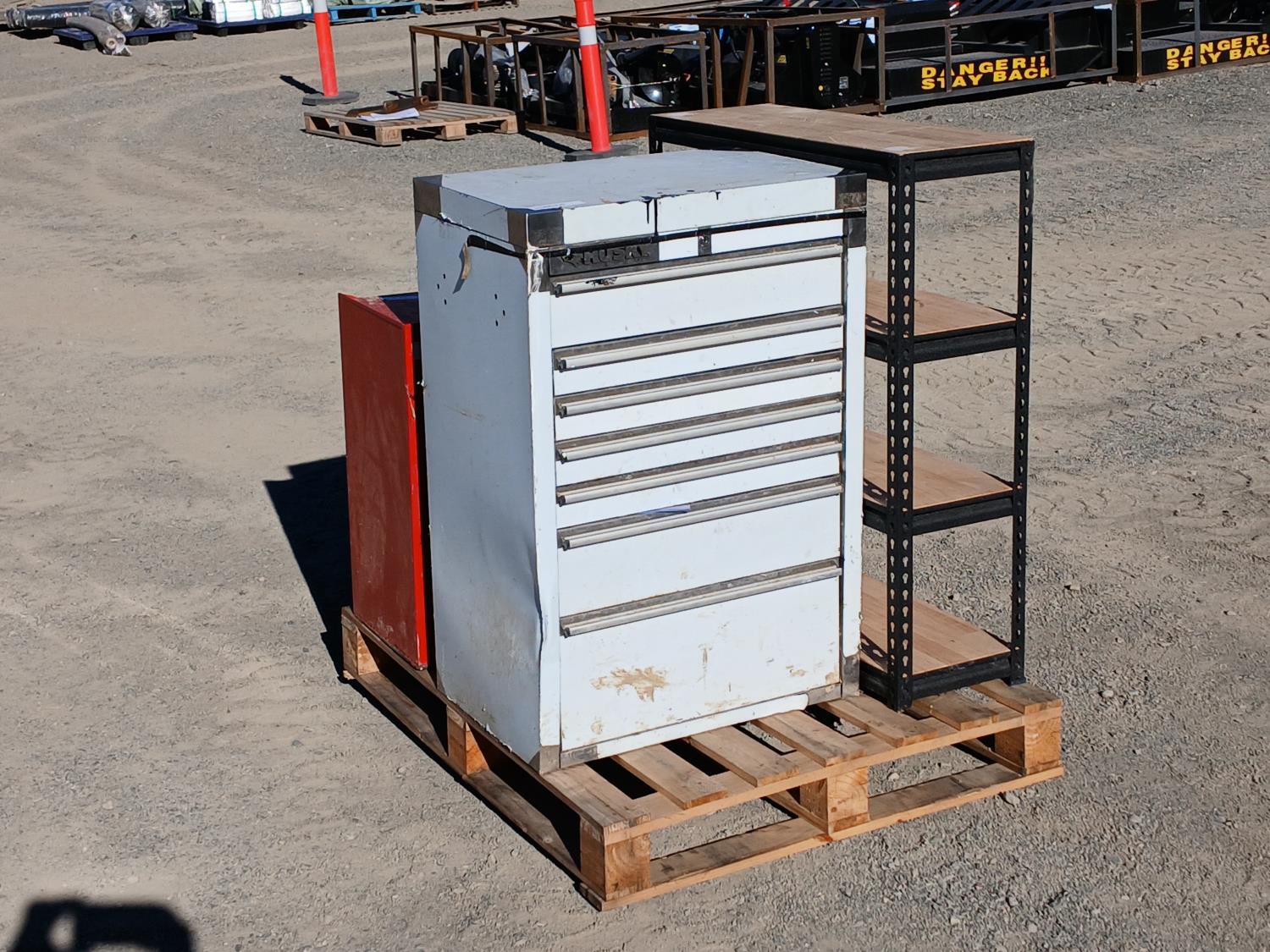 733 (2) Tool Chests & (1) Four Tier Shop Shelf