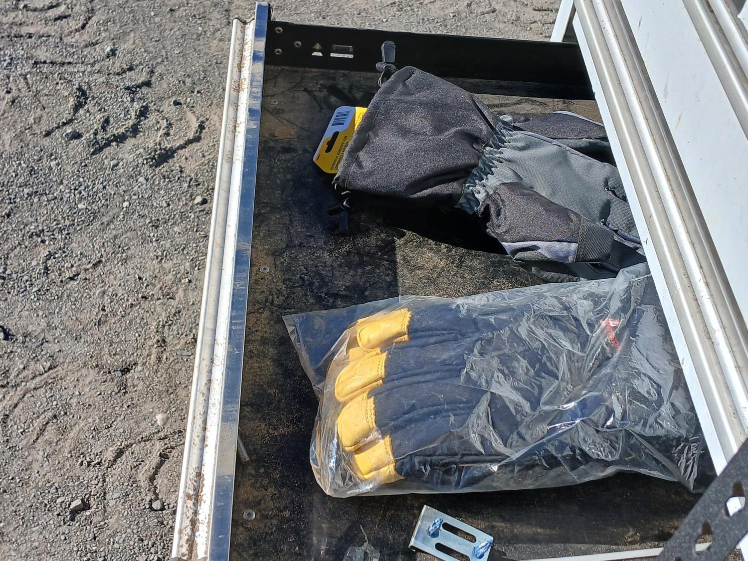 Included: (2) pairs of insulated work gloves, cabinet hardware, hinges, screw hooks, and small 8 oz plastic bags.