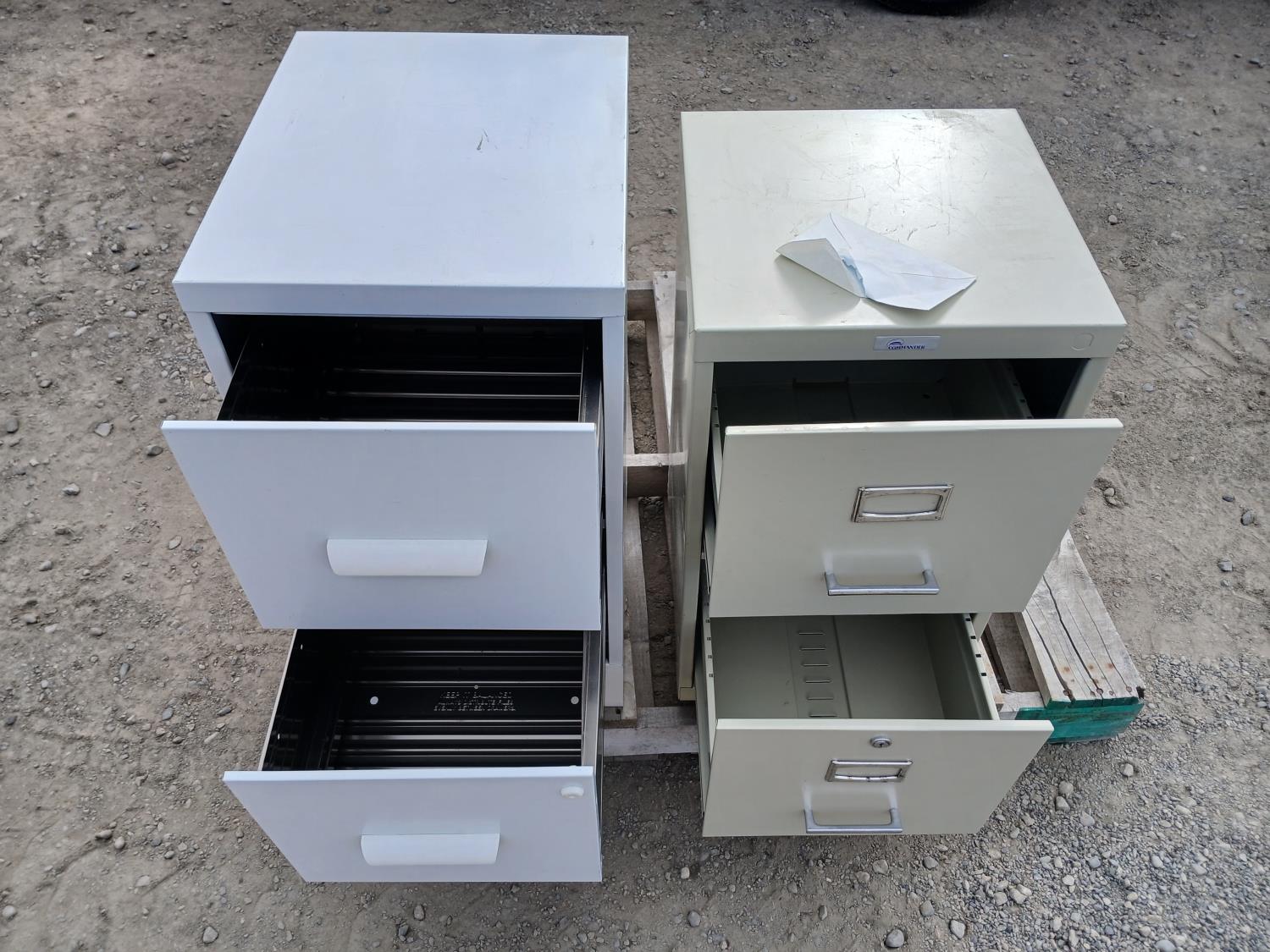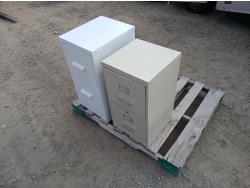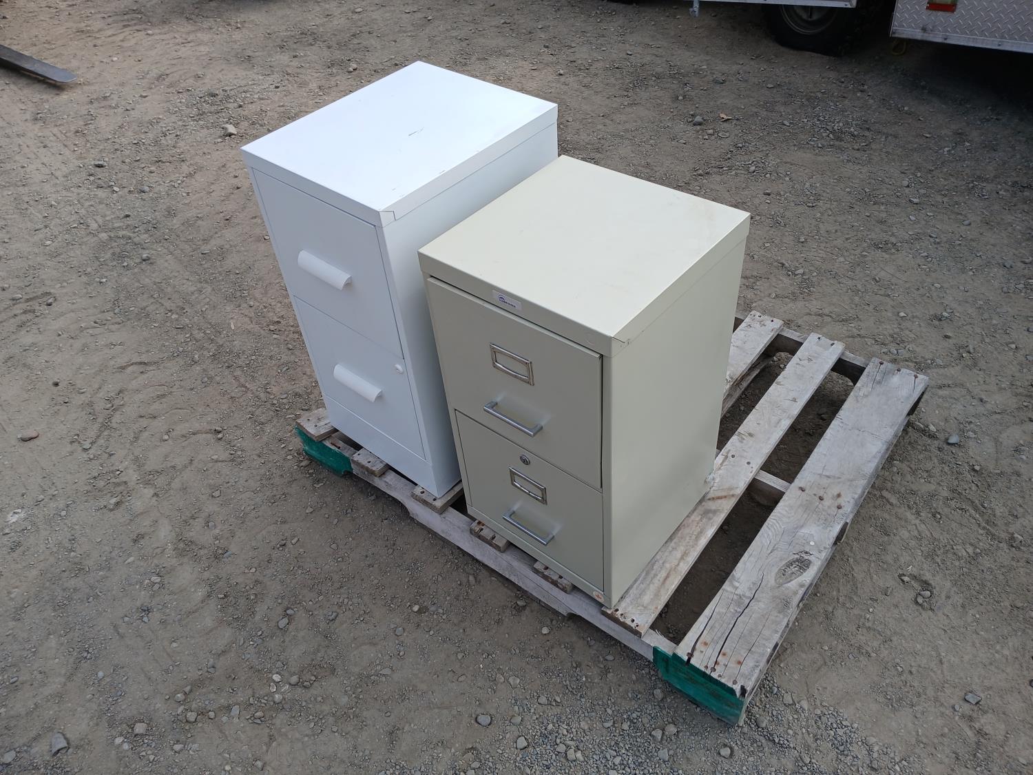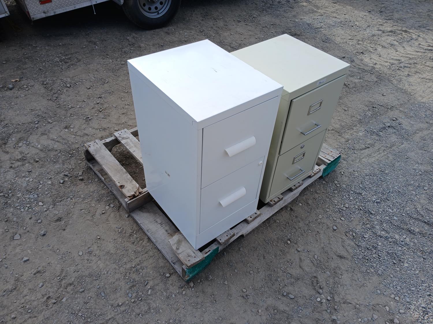 (1) Beige 2 drawer file cabinet, (1) White 2 drawer file cabinet