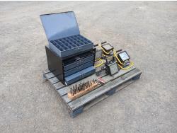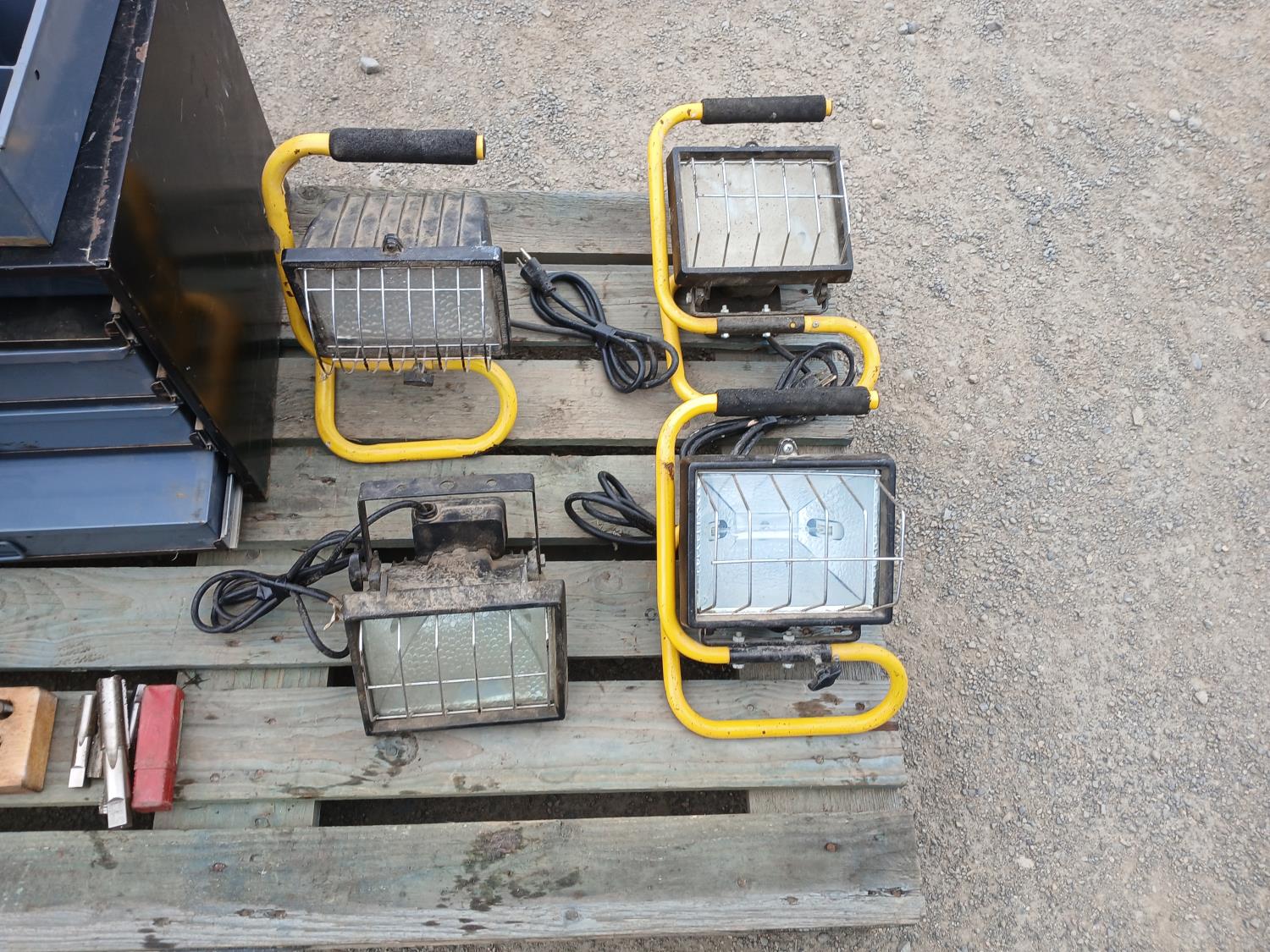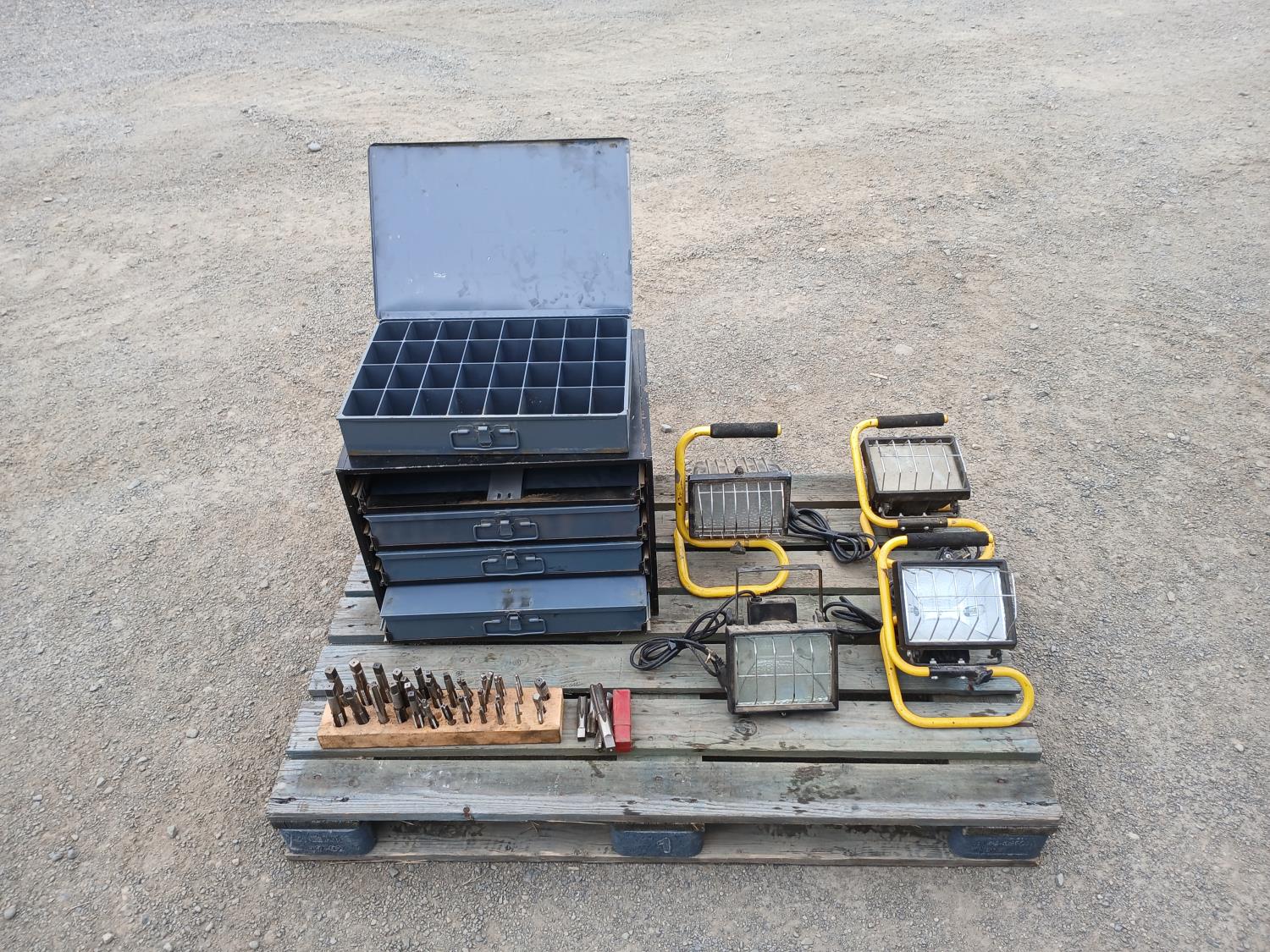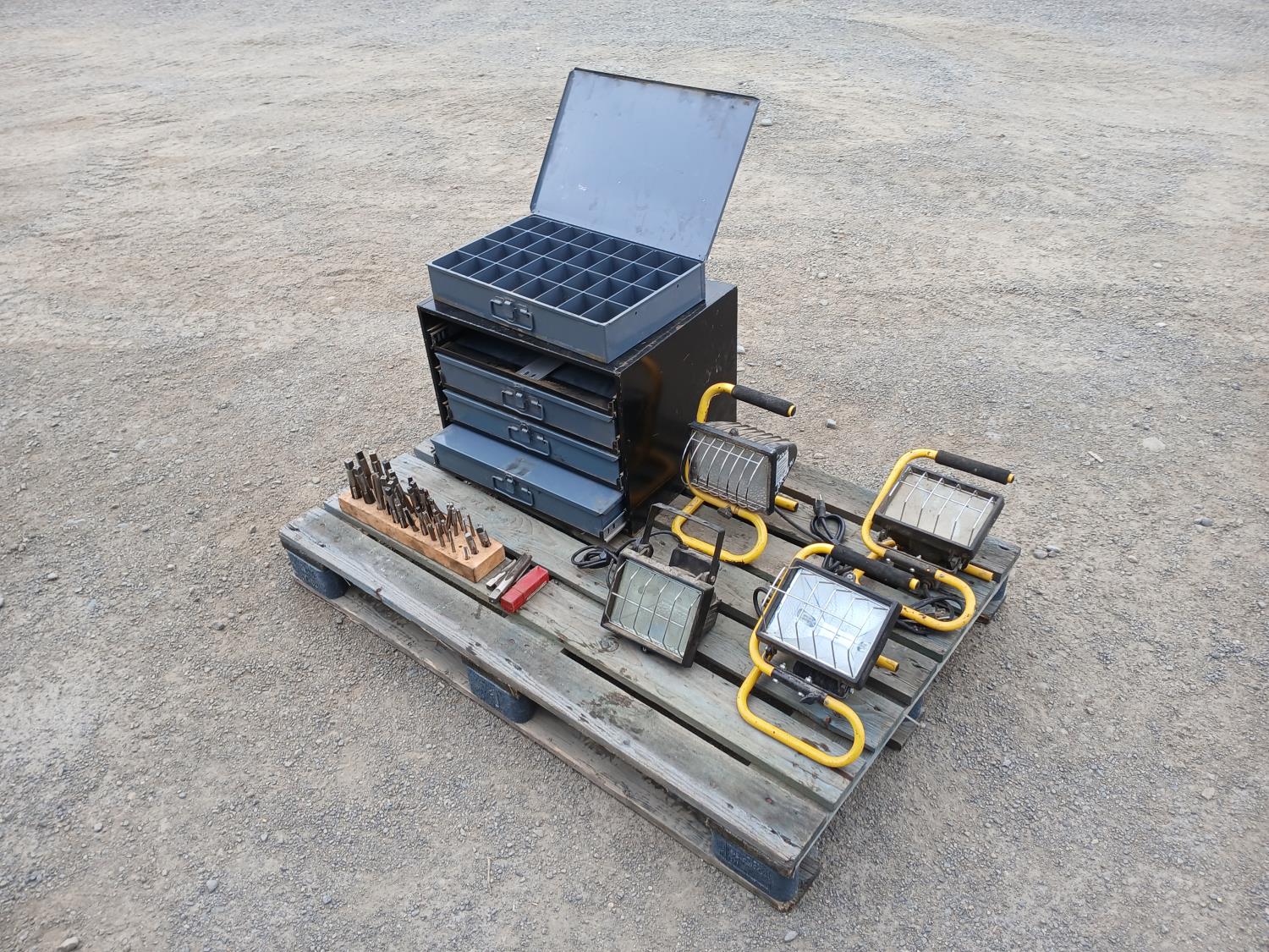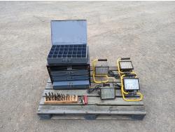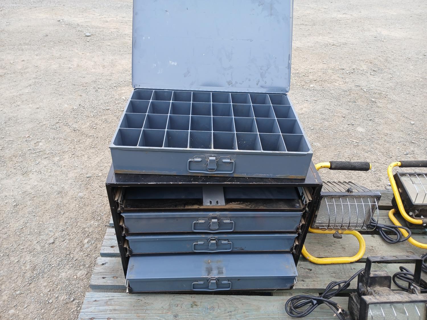 802 (4) Portable LED Task Lights & Four Drawer Accessories Storage Chest