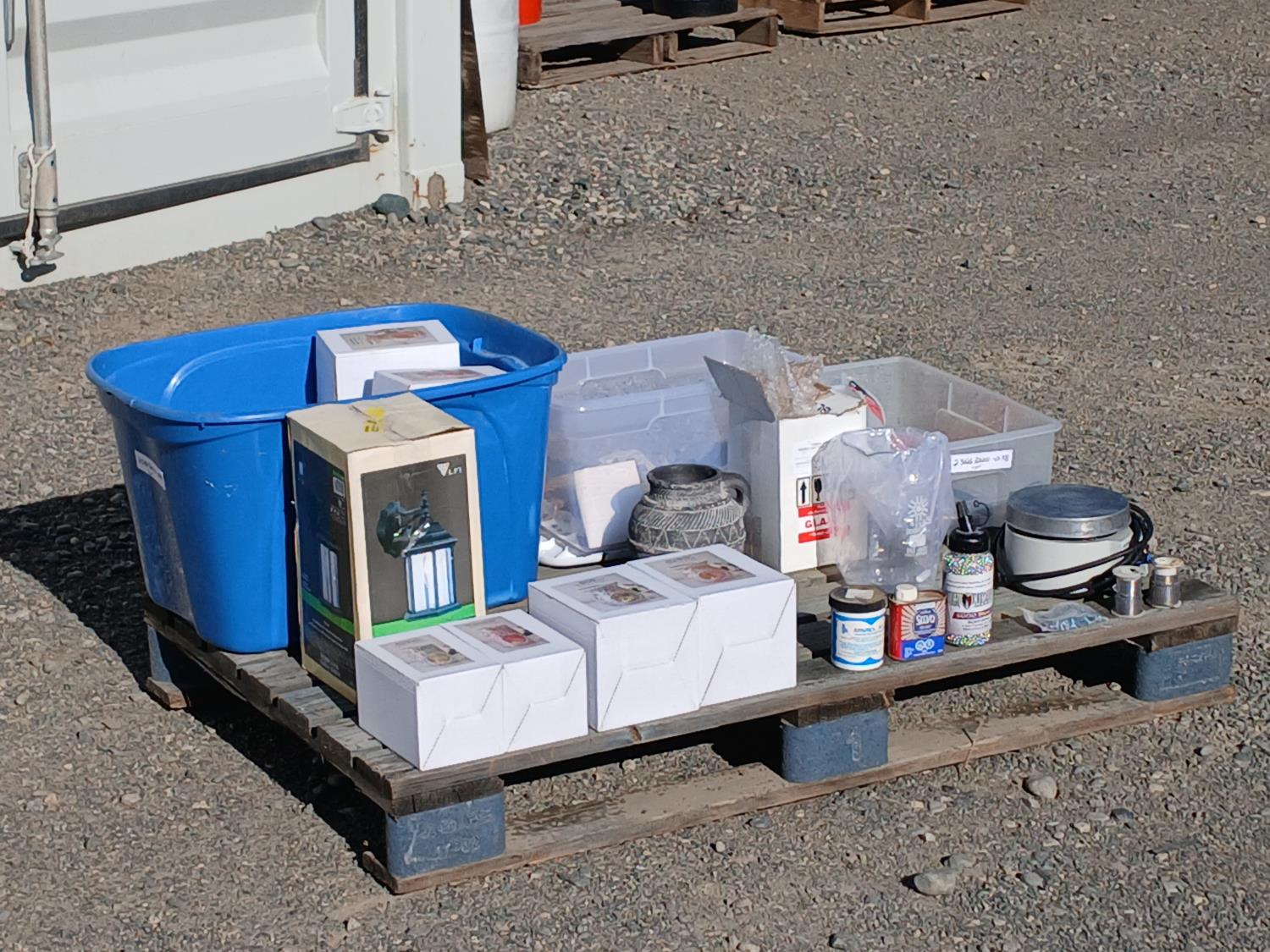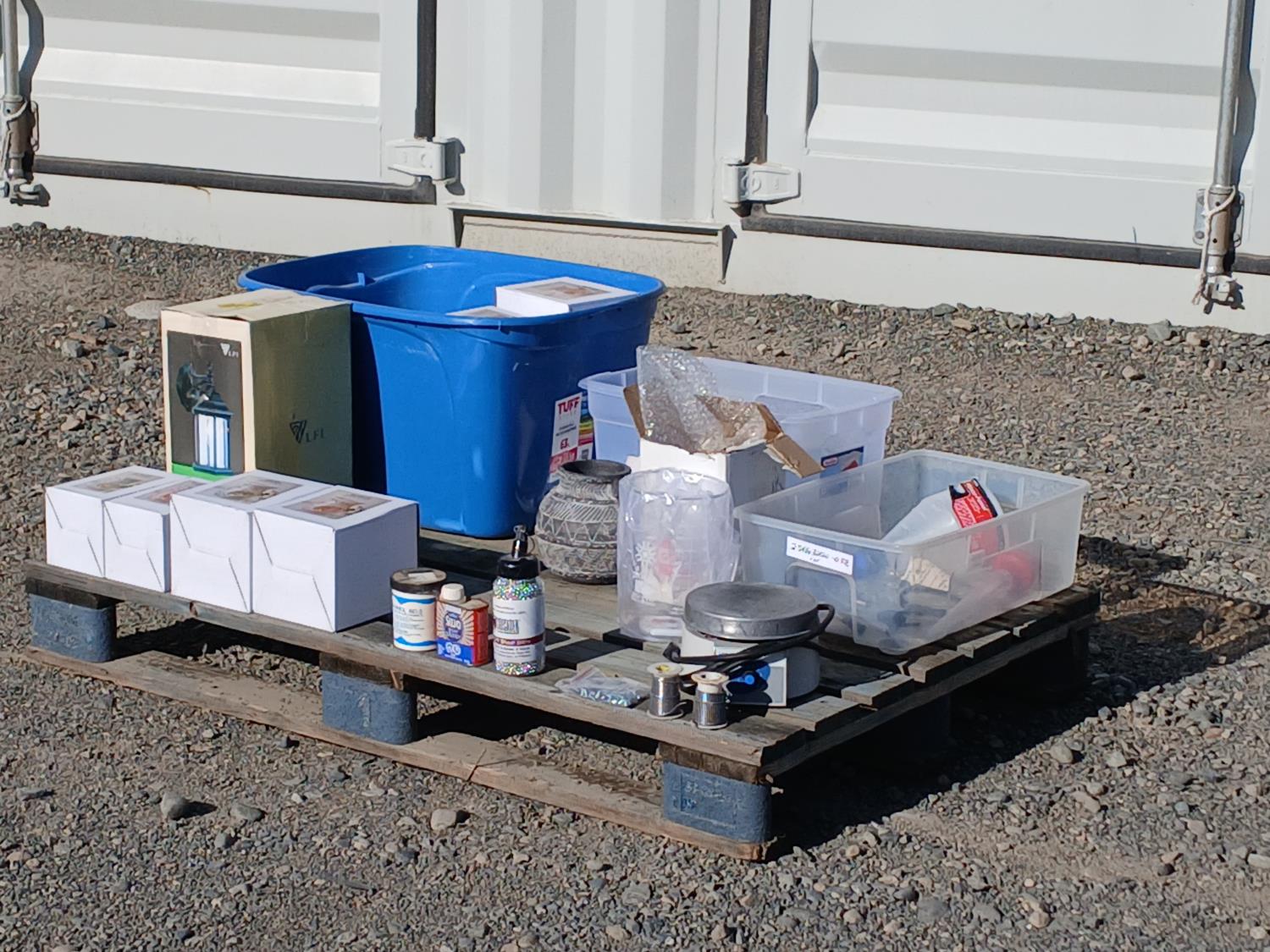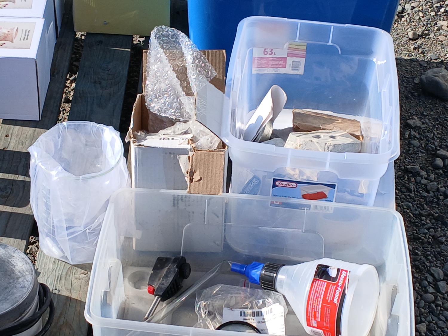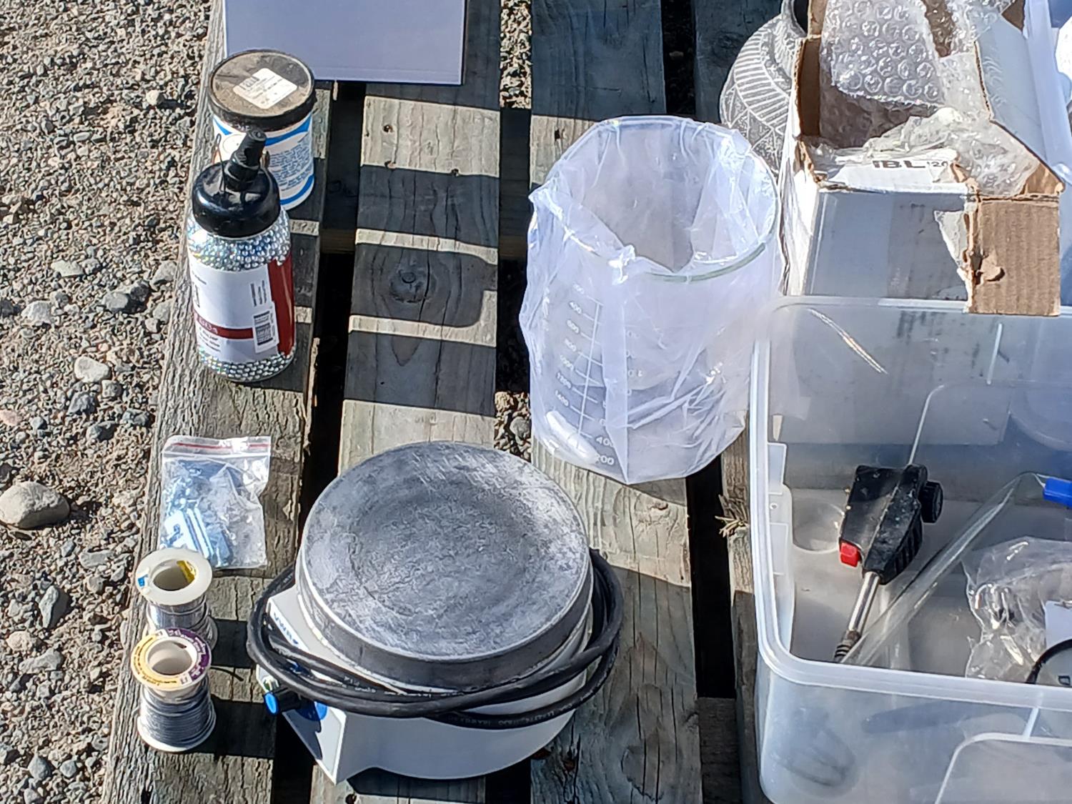 (6) pieces soap stone, (1) 2000ml glass beaker, (2) rolls pewter wire, (i) bottle stainless BBs, (11) ornamental scented oil burners, (1) exterior sconce light, (1) pottery vase, (1) electric burner, other small miscellaneous items.
