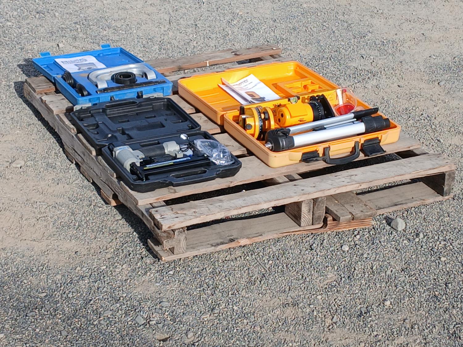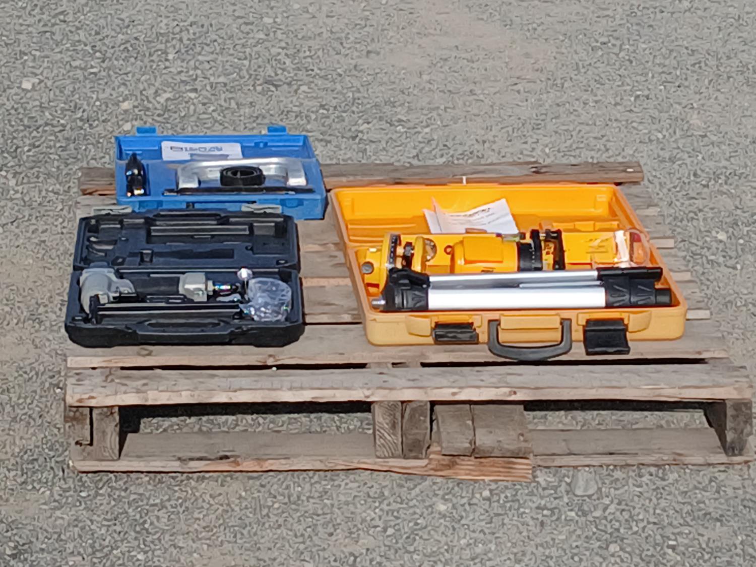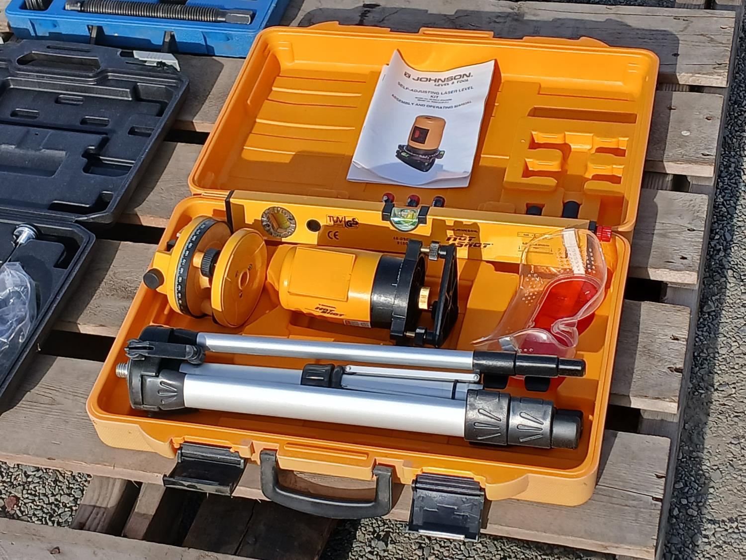 (1) Johnson Self adjusting laser level, (1) Rok Bradnailer, (1) Power fist 3-in-1 Ujoint/C-frame/ Ball joint service kit.