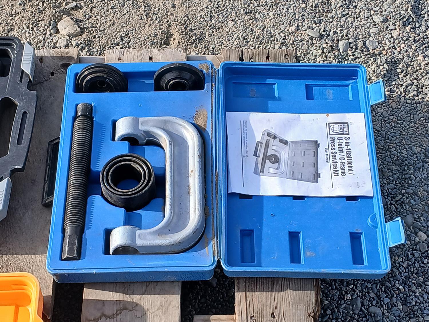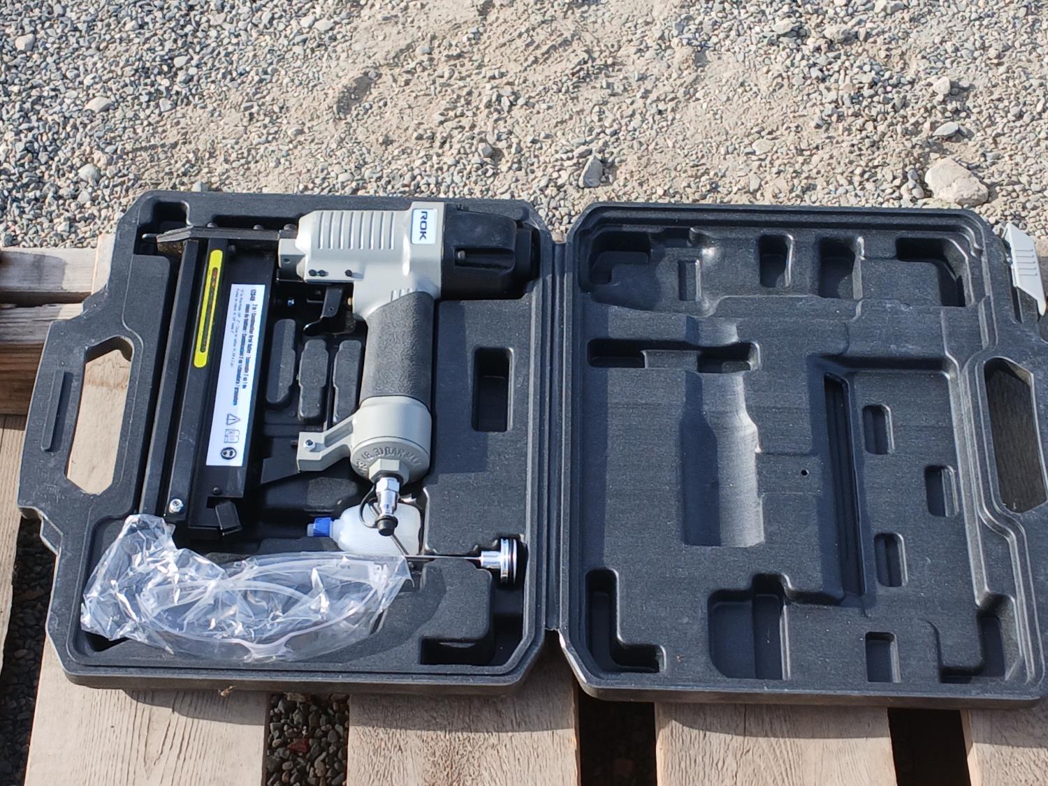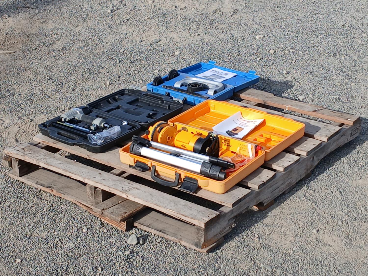 (1) Johnson Self adjusting laser level, (1) Rok Bradnailer, (1) Power fist 3-in-1 Ujoint/C-frame/ Ball joint service kit.