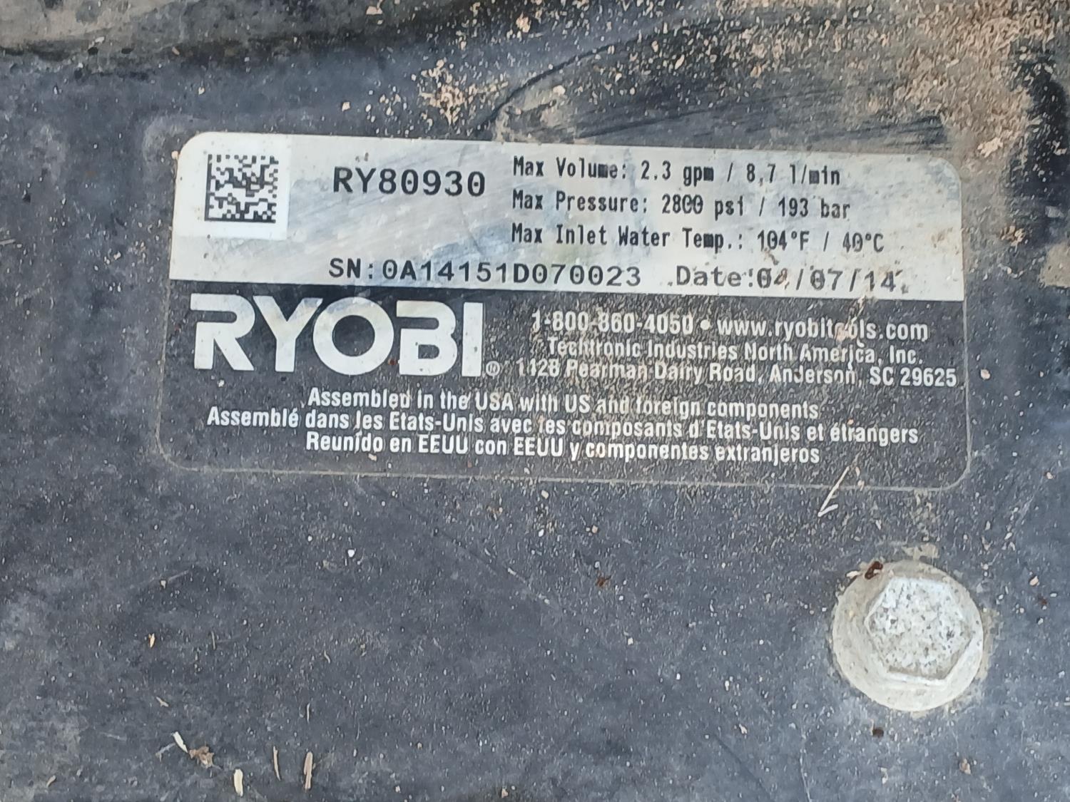 807 2014 Ryobi RY80930 Gas Powered Pressure Washer