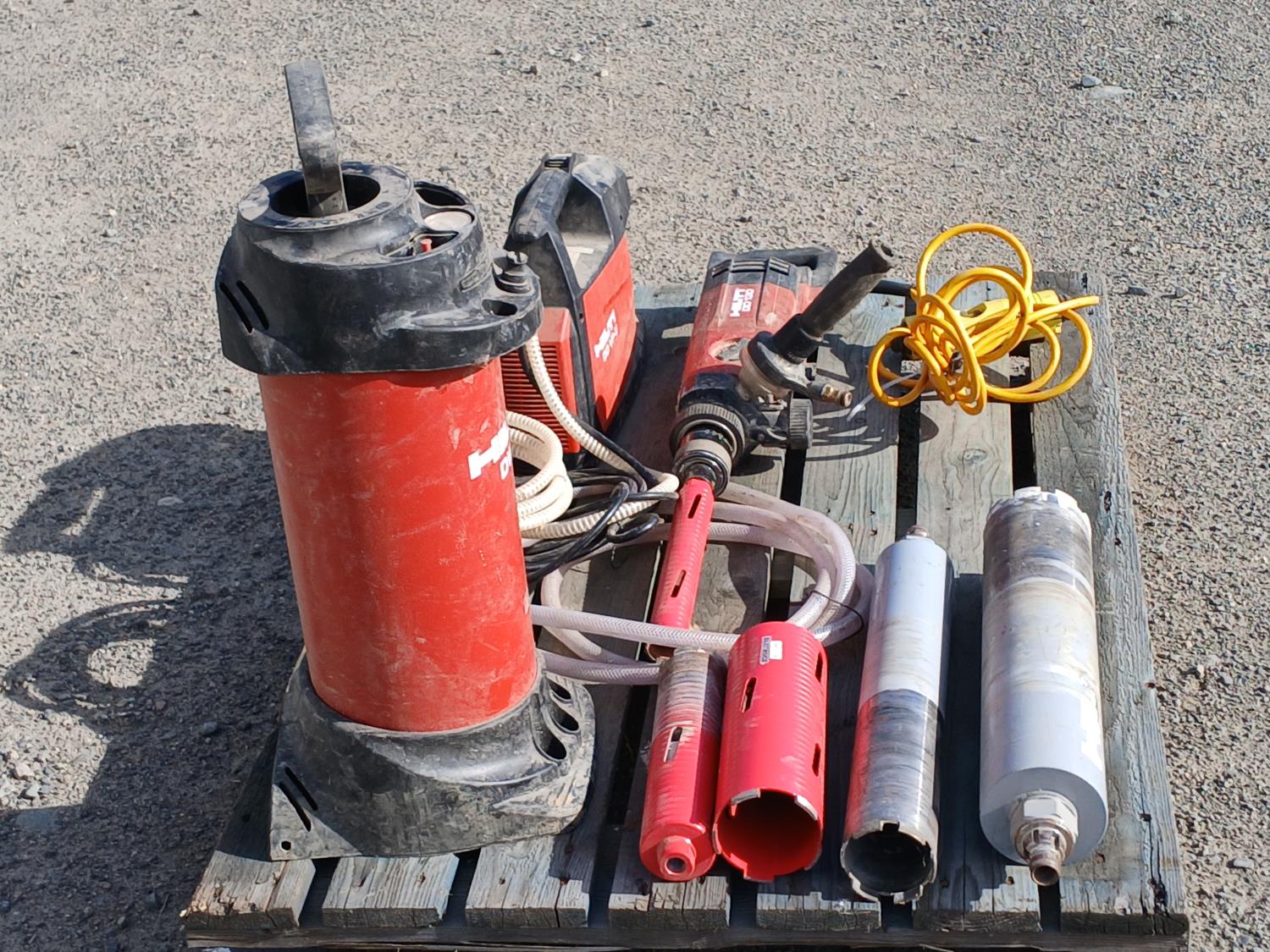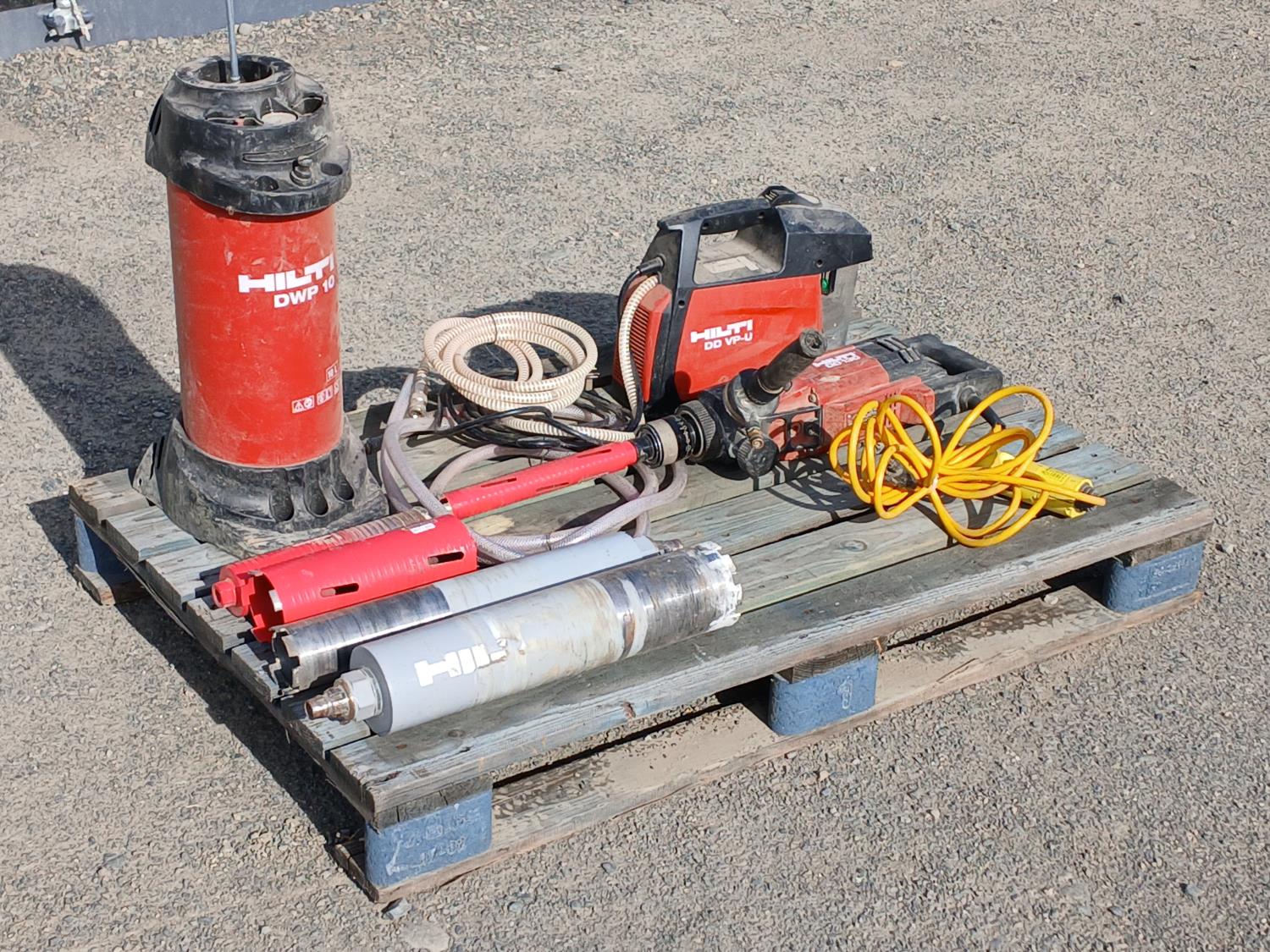 (1) Hilti DWP 10 portable water supply unit, (1) Hilti DD VP-U vacuum pump, (1) Hilti DD 130 core drill, (5) Diamond drill bits.