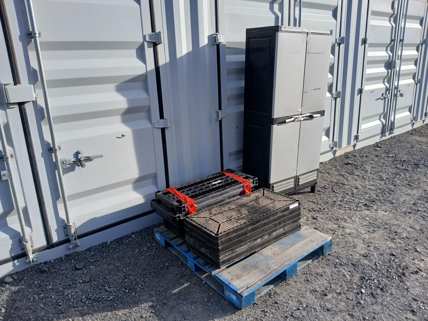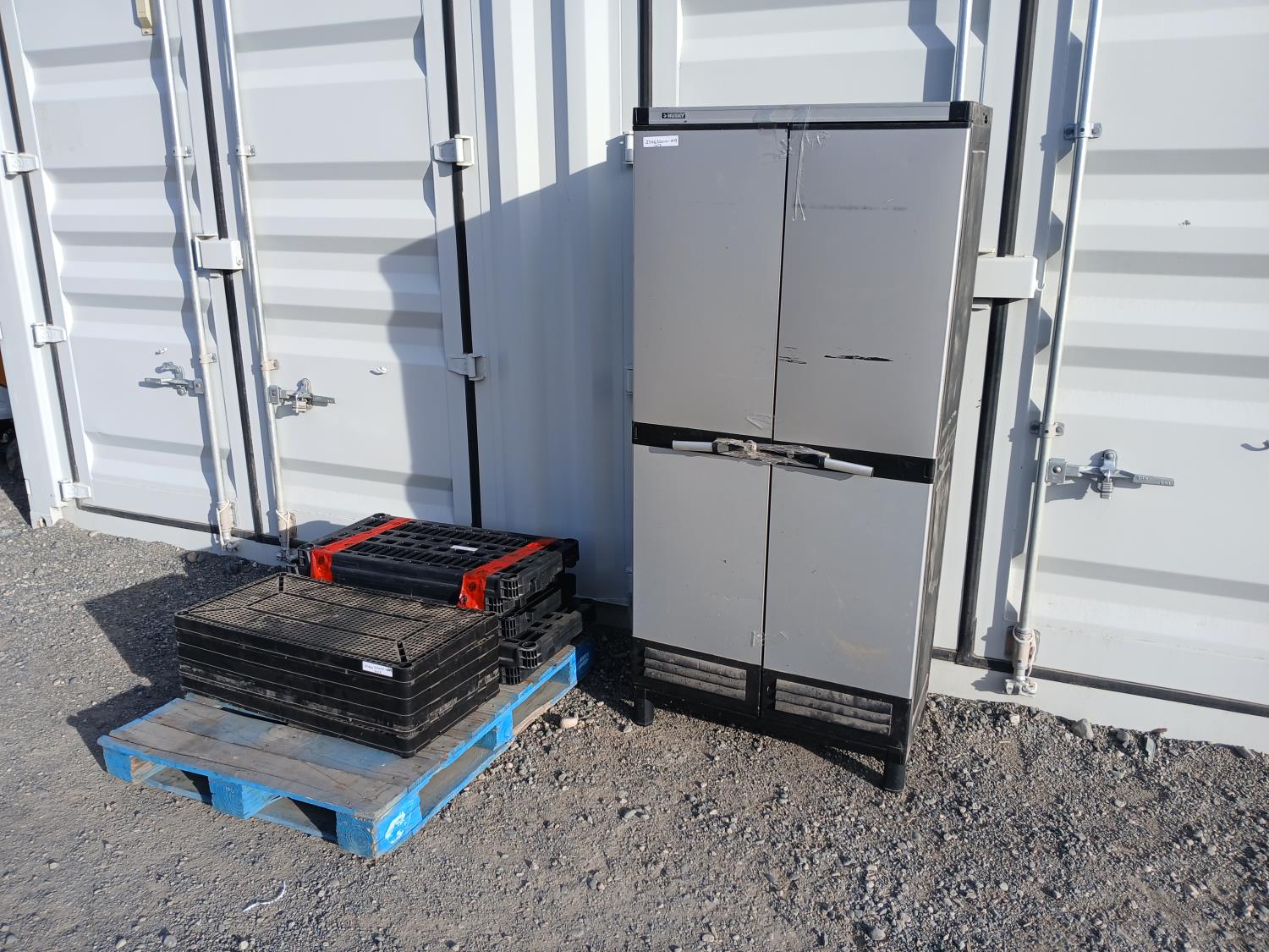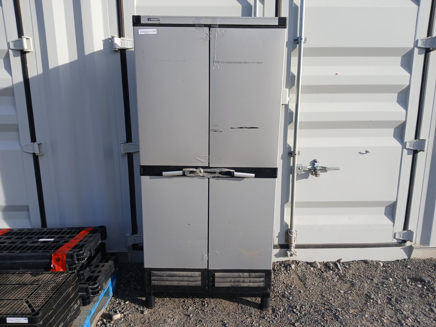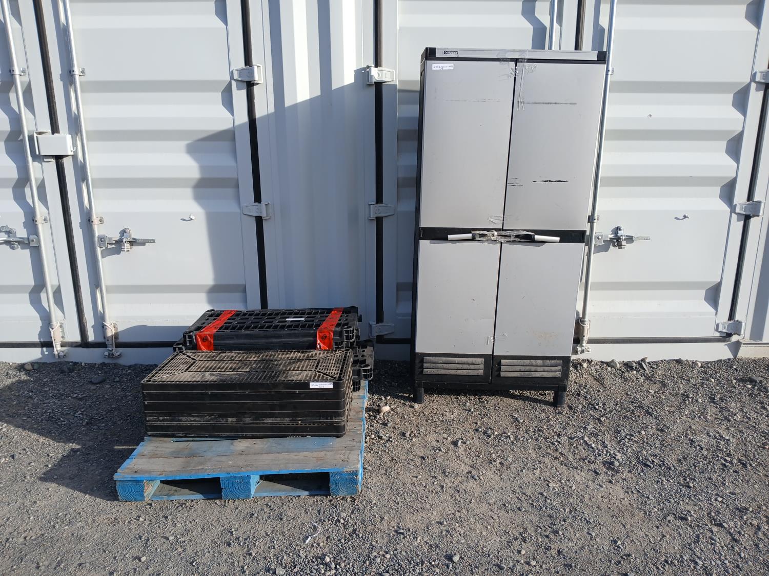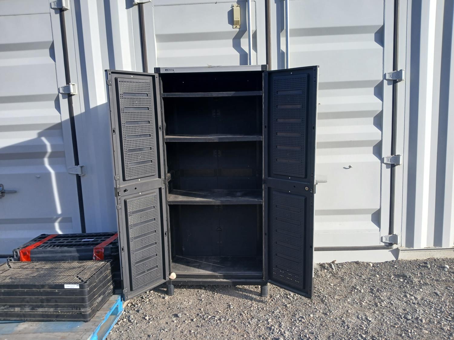 732 Husky Double Door Shop Cabinet & (2) Plastic Shelving Units