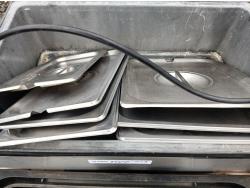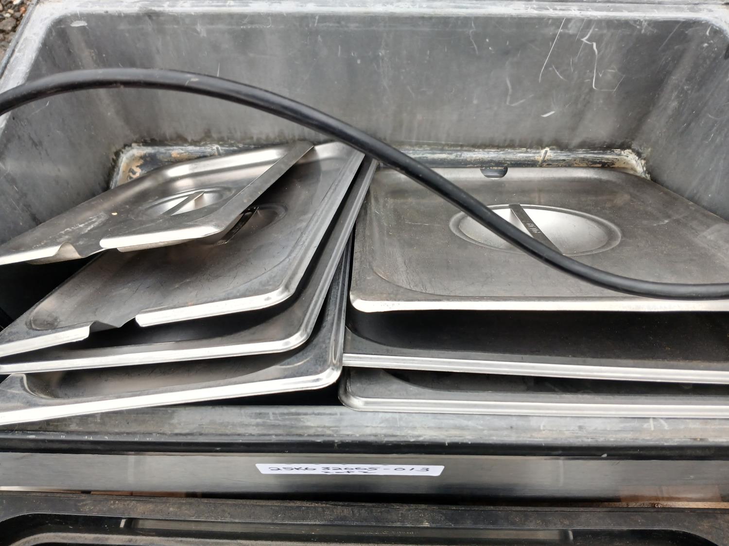 (1) Large water bath warmer, with temperature control. (2) full length lids, (8) Half length 2inch and 4 inch inserts, and various small inserts.