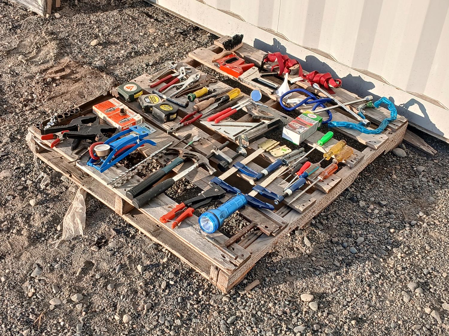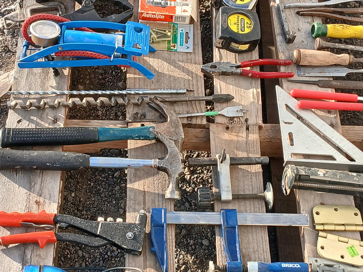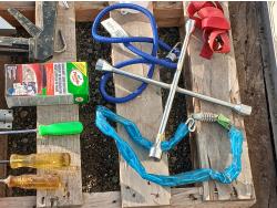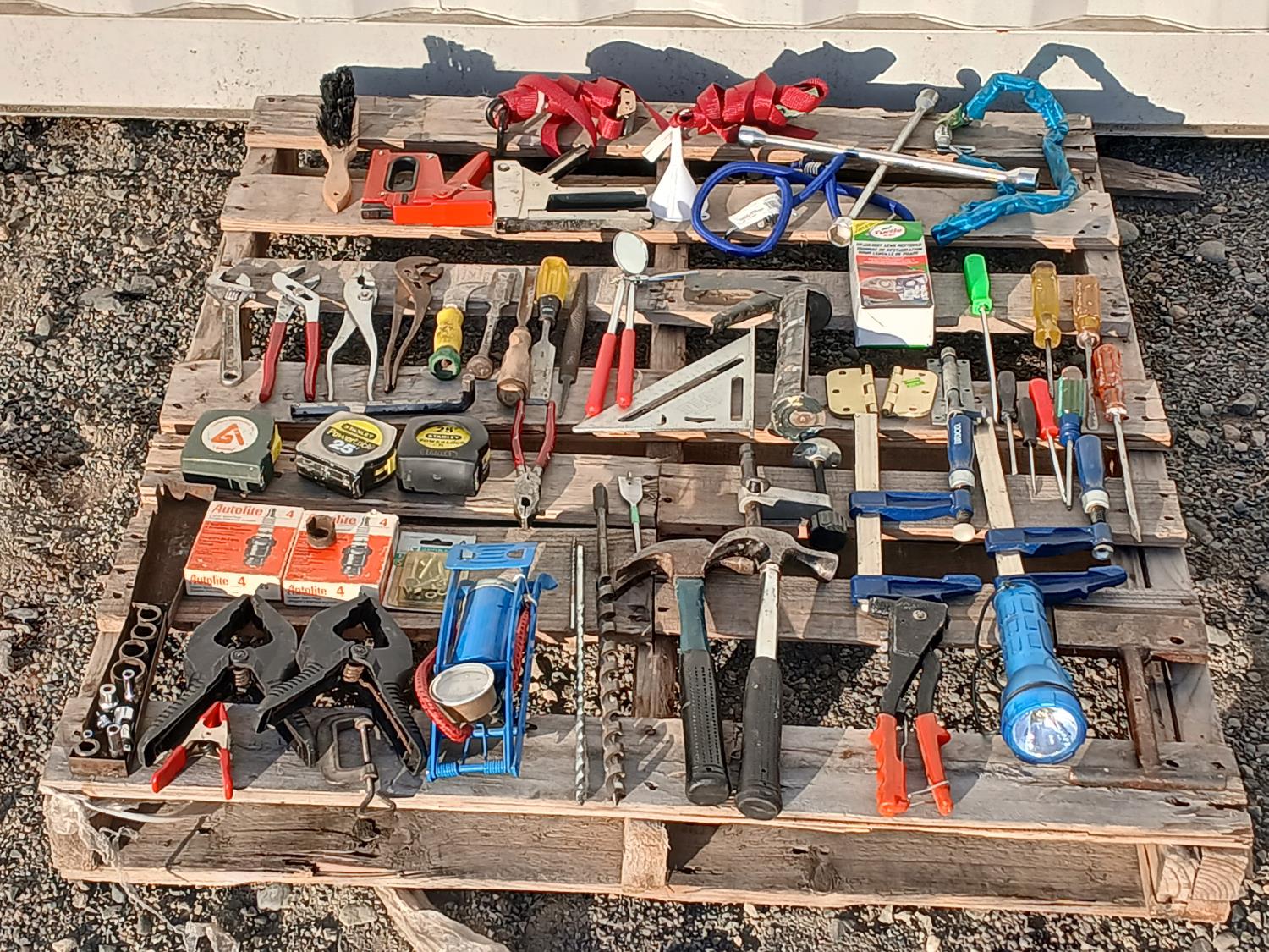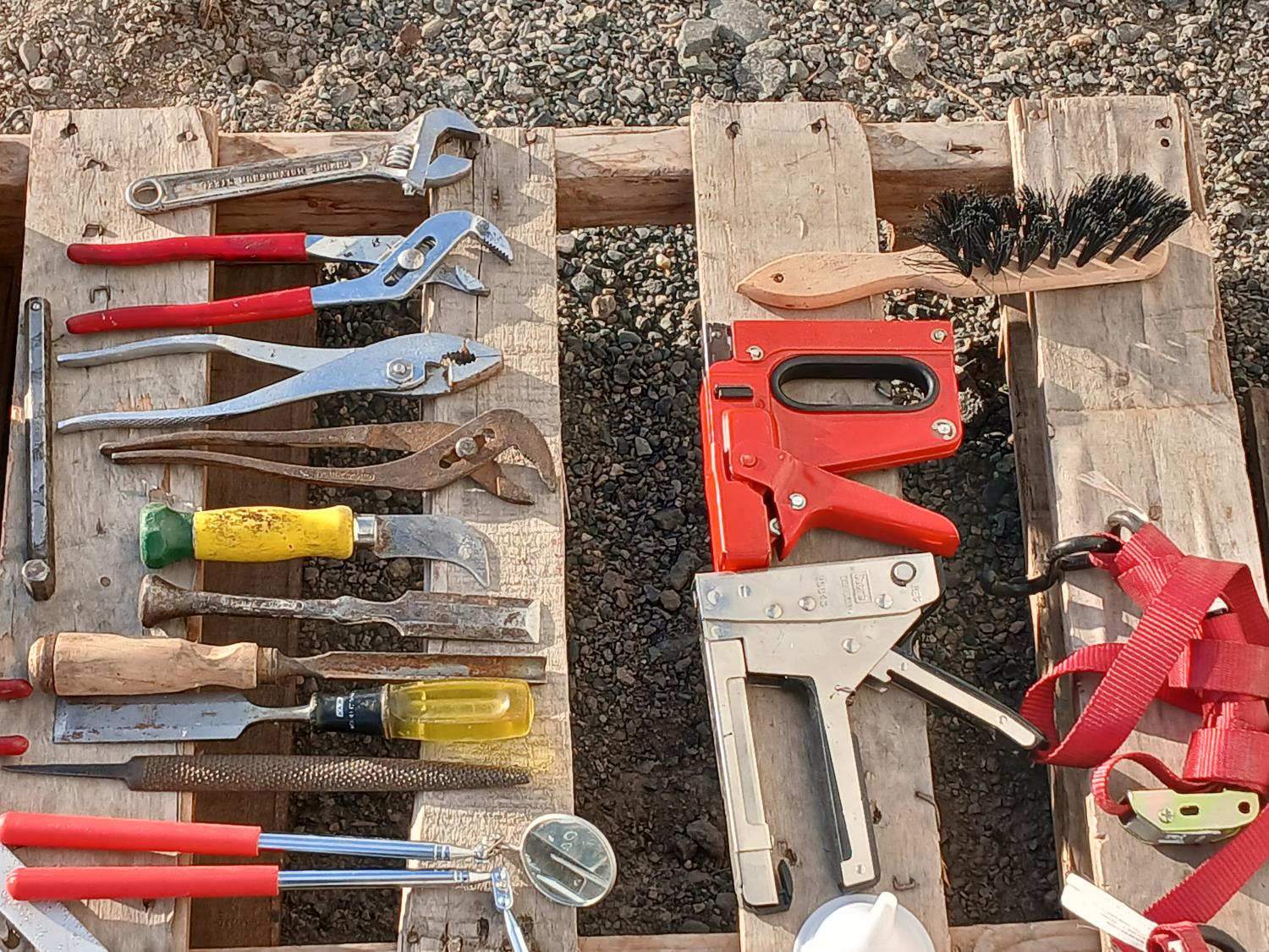 Multiple clamps, pliers, screw drivers, tie down straps, and other various hand tools, and accessories.