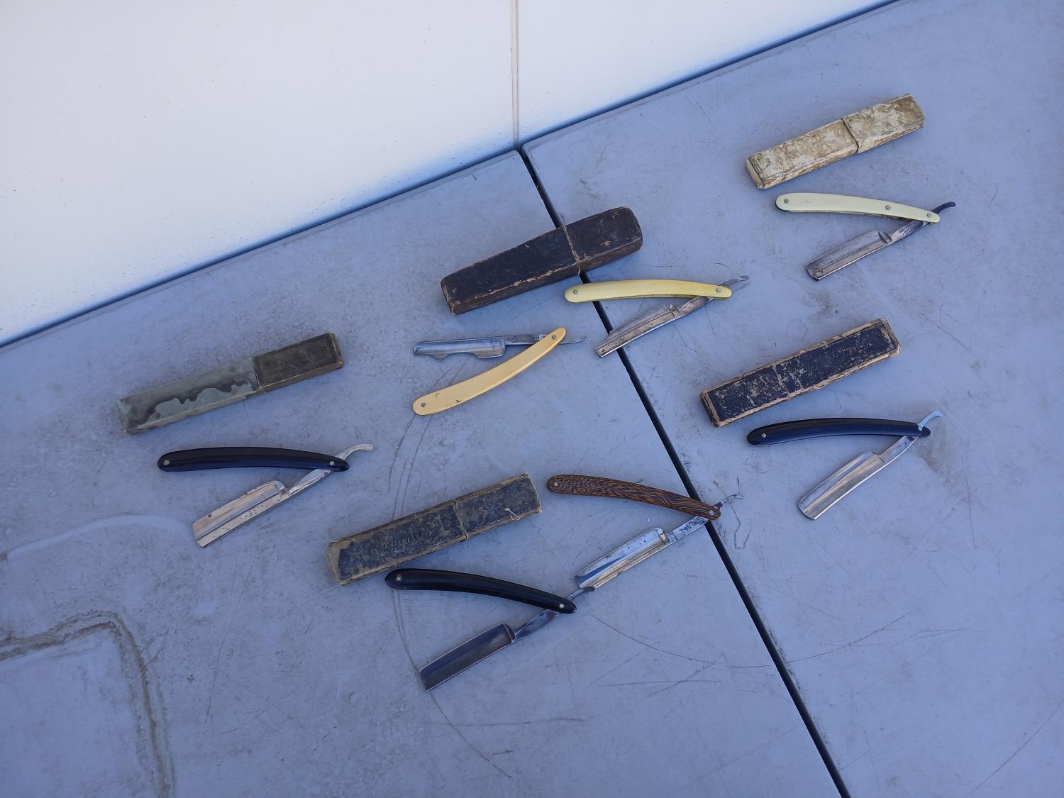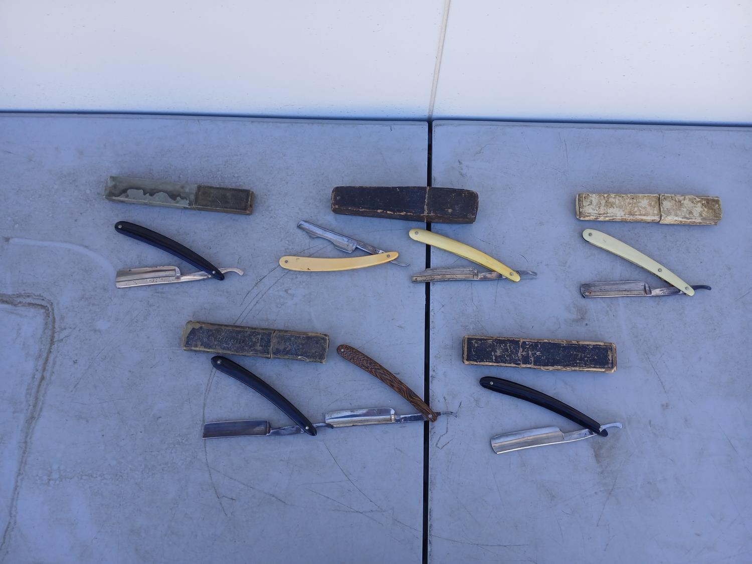 (7) collectable old straight razors, age unknown. All but one are in original boxes.