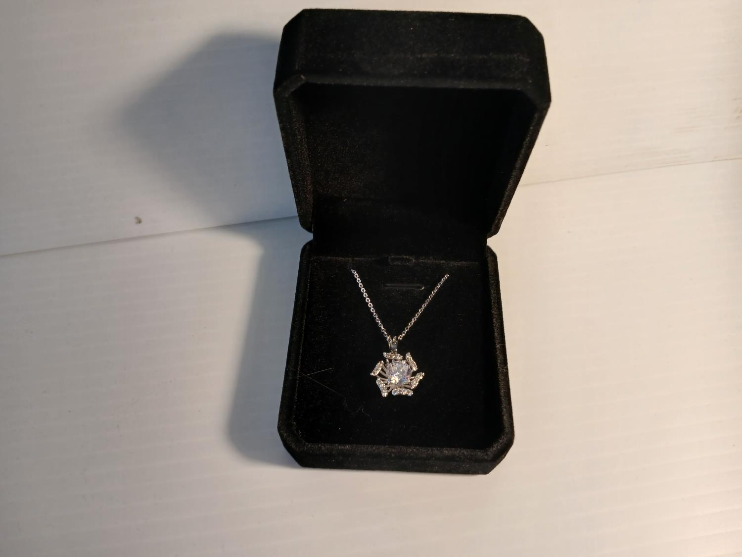 2.0ct simulated diamonds. Adjustable 16-18 inch adjustable chain.