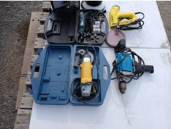 (1) Stanley electric Stapler, (1) Makita Hammer drill, (1) TE Grinder with discs, Wen 8inch car waxer, Black and Decker Wizard dremel rotary tool.