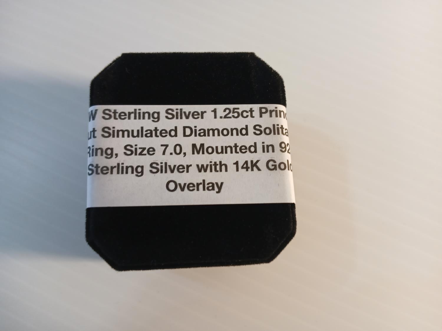 Size 7. 1.25ct Simulated diamond, mounted in 925 sterling silver, with 14K gold overlay.