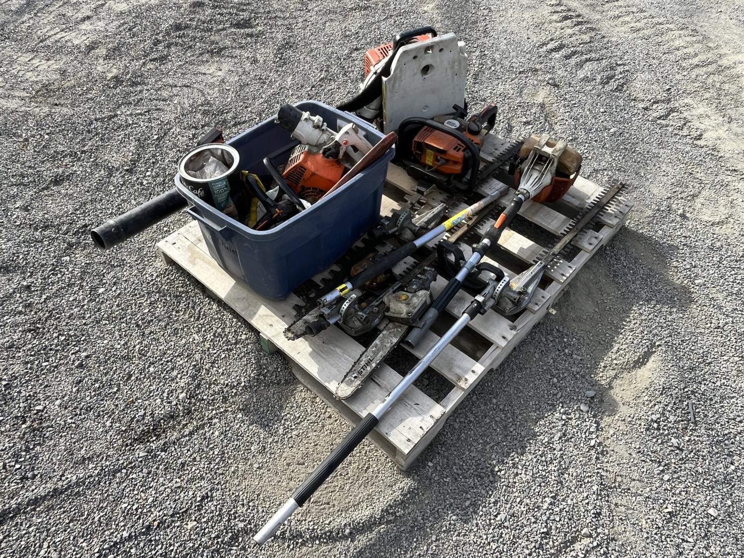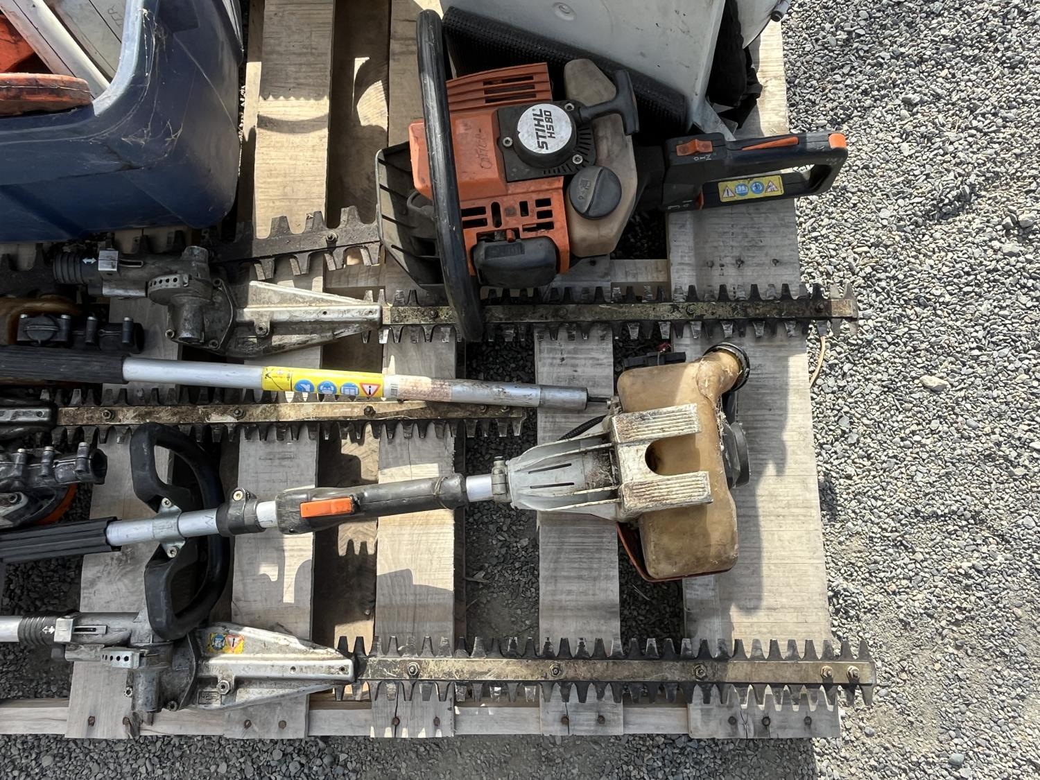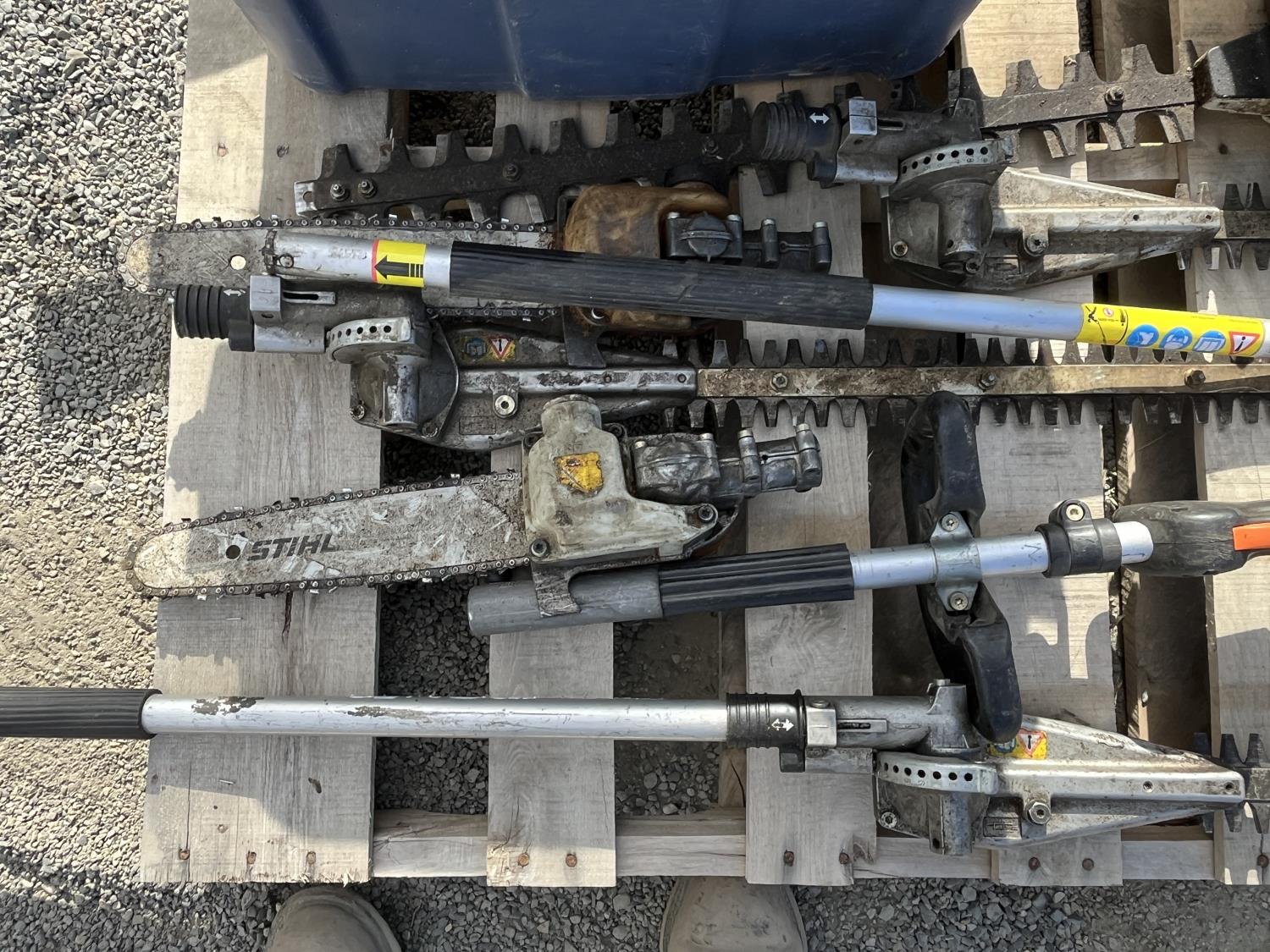 Hedge trimmer, extension polls, parts bin,