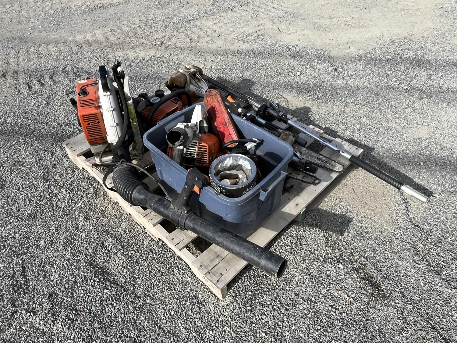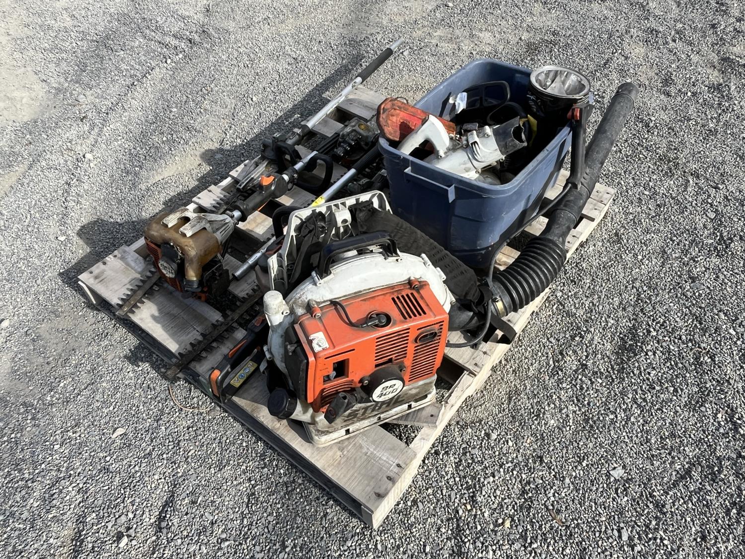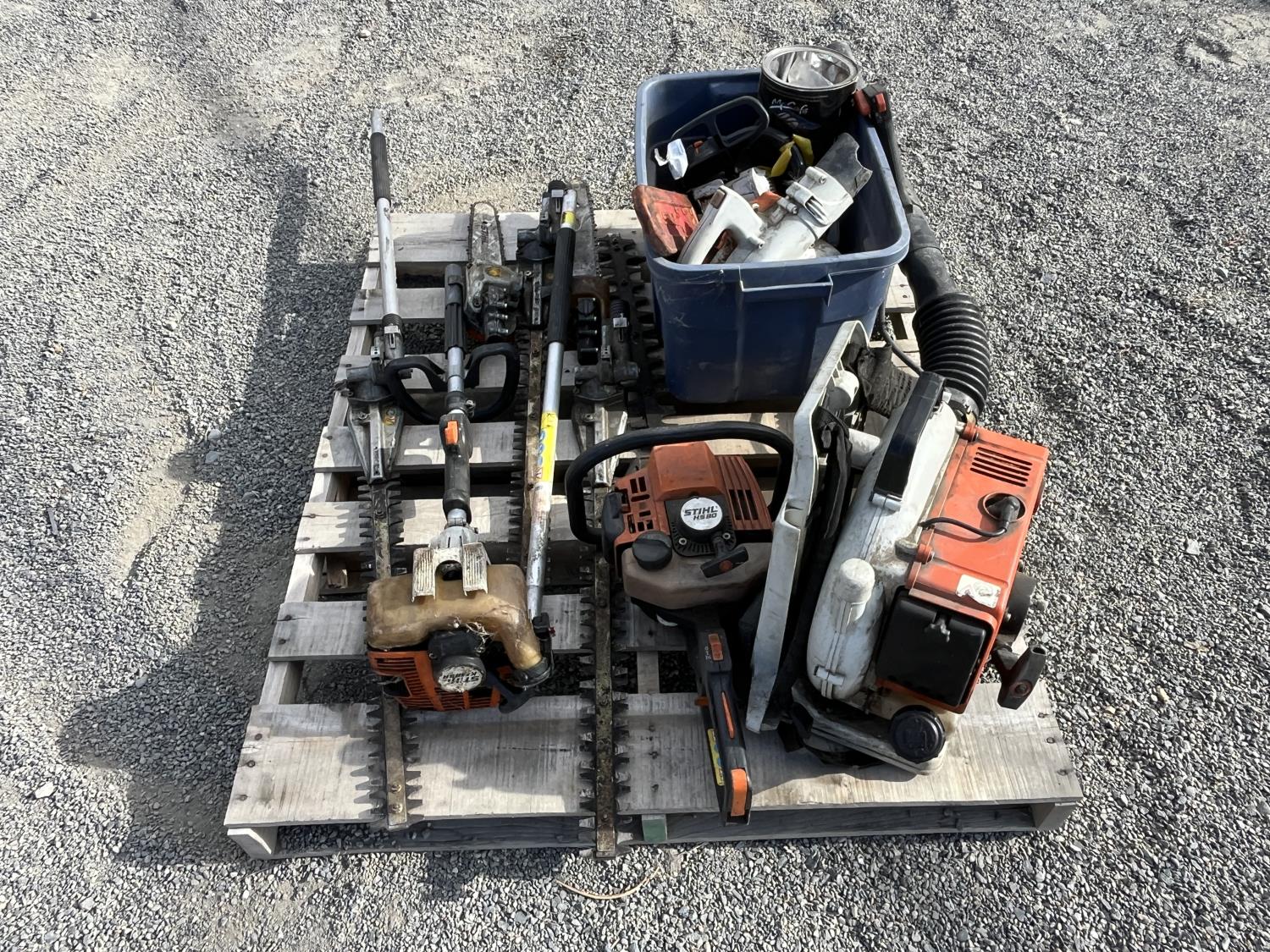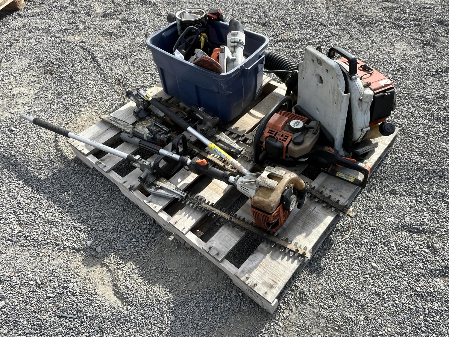 Hedge trimmer, extension polls, parts bin,
